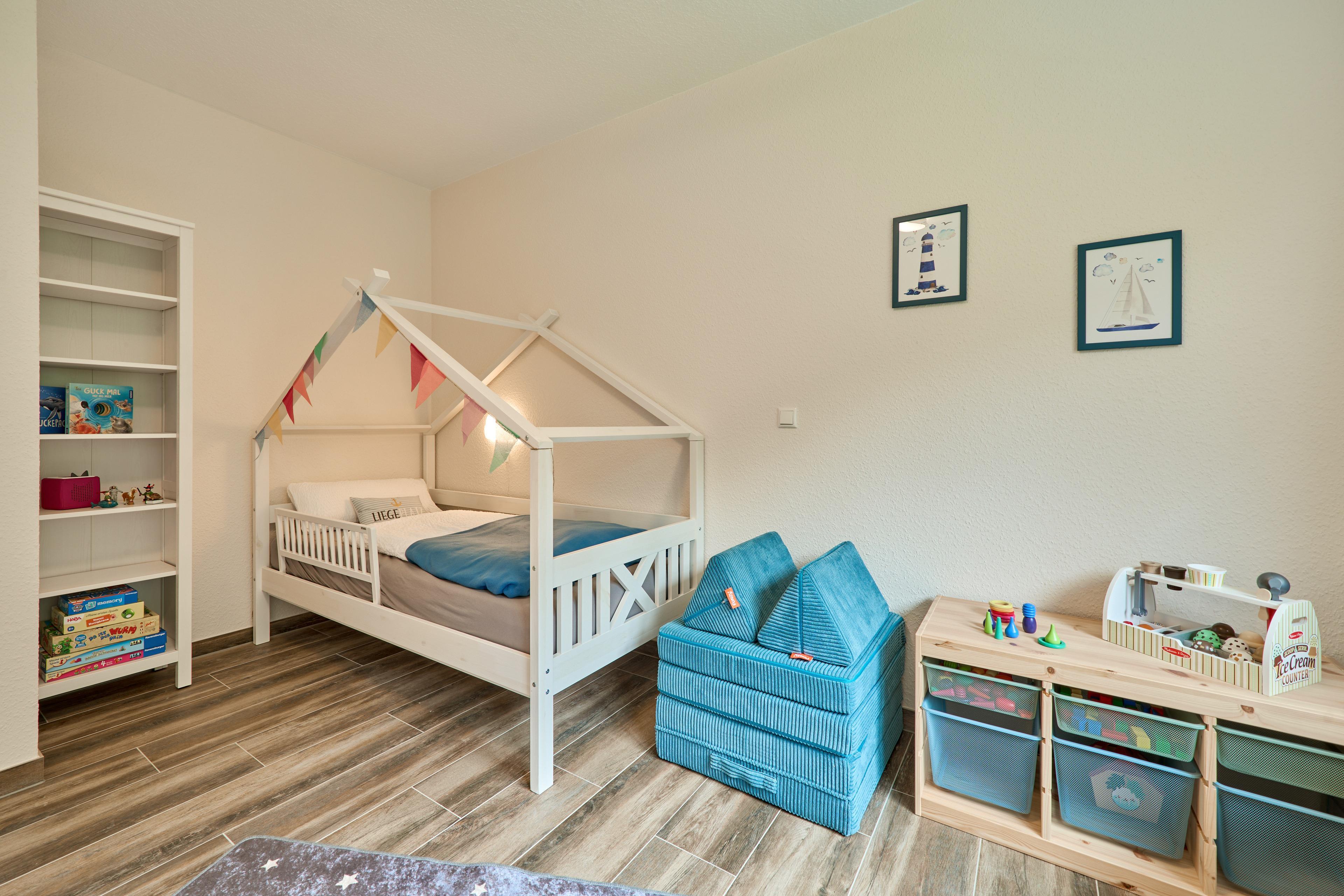 Dich erwartet in der Wohnung: Familienbett, Kinderzimmer mit Wickelkommode, hochwertiges Spielzeug, sehr gut ausgestattete Küche, Badezimmer mit Wellnessdusche & Badewanne, großer, eingezäunter Garten mit überdachter Terrasse.