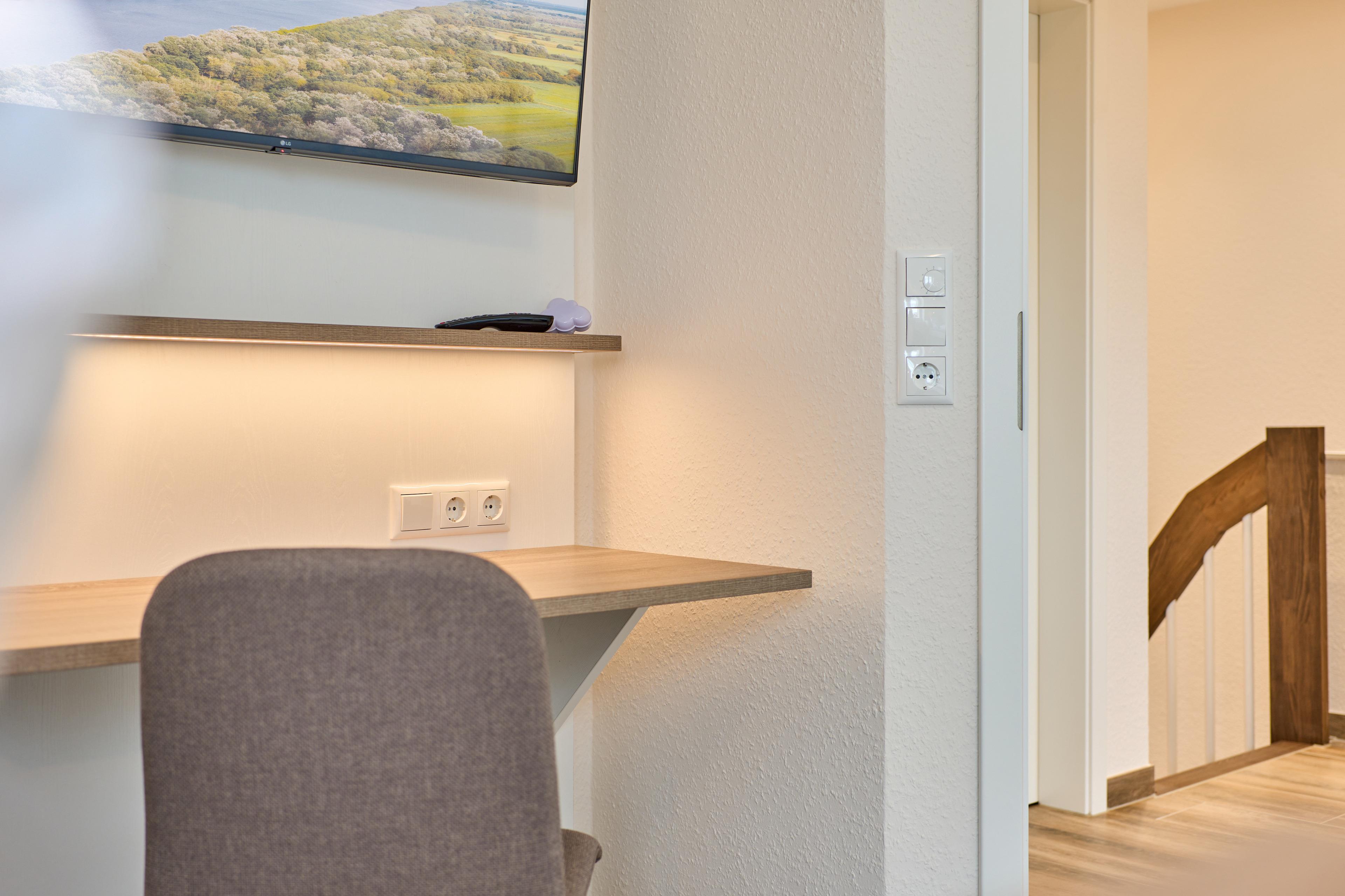 Workation/ Homeoffice: Schreibtisch, Glasfaser u. Festnetz