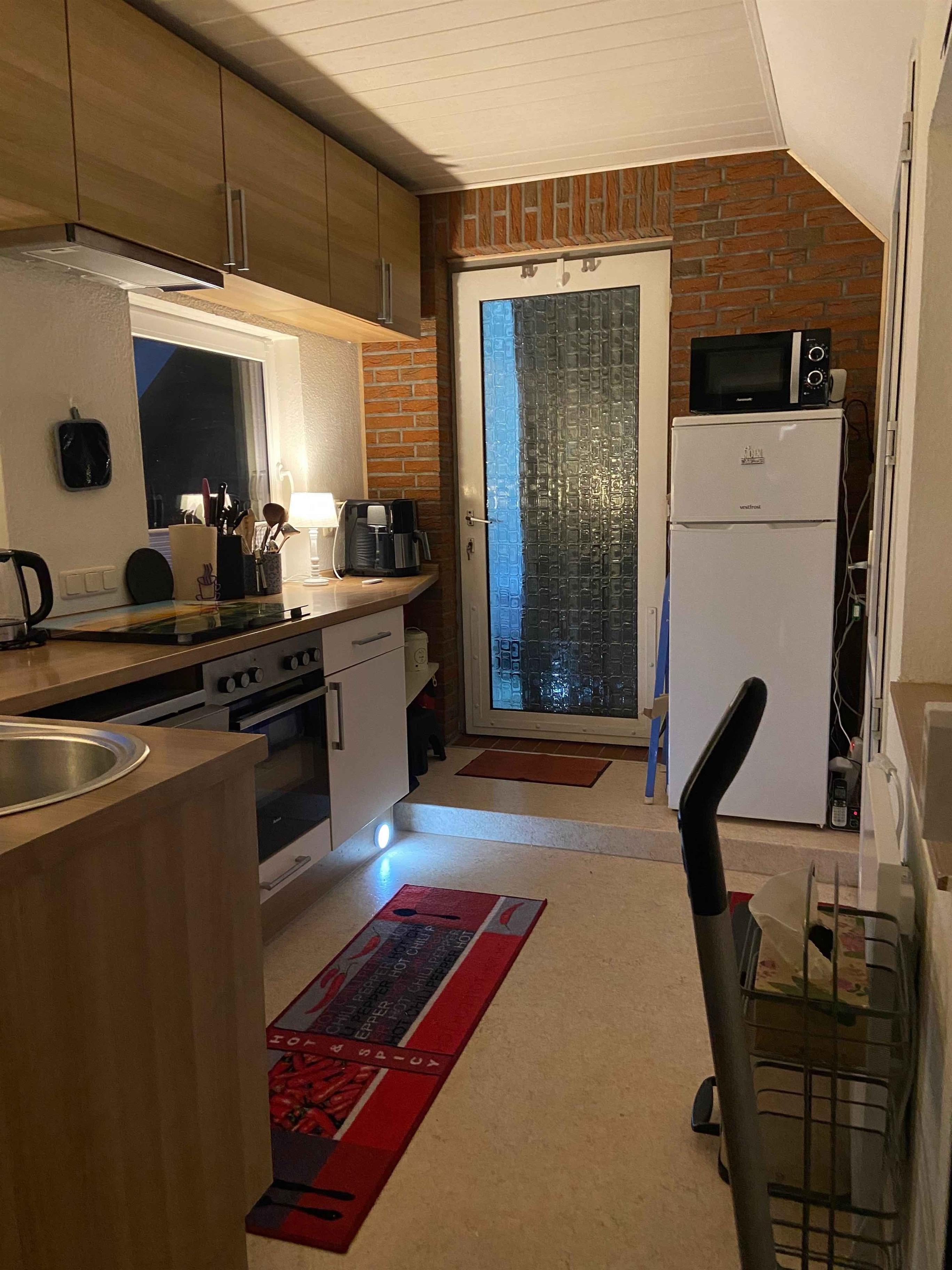 Die Zimmer strahlen eine angenehme Atmosphäre aus und die Küche ist komplett eingerichtet. Herd, Backofen, Geschirrspüler, Kühlschrank, Kaffeemaschine, Wasserkocher, Toaster usw. sind vorhanden.