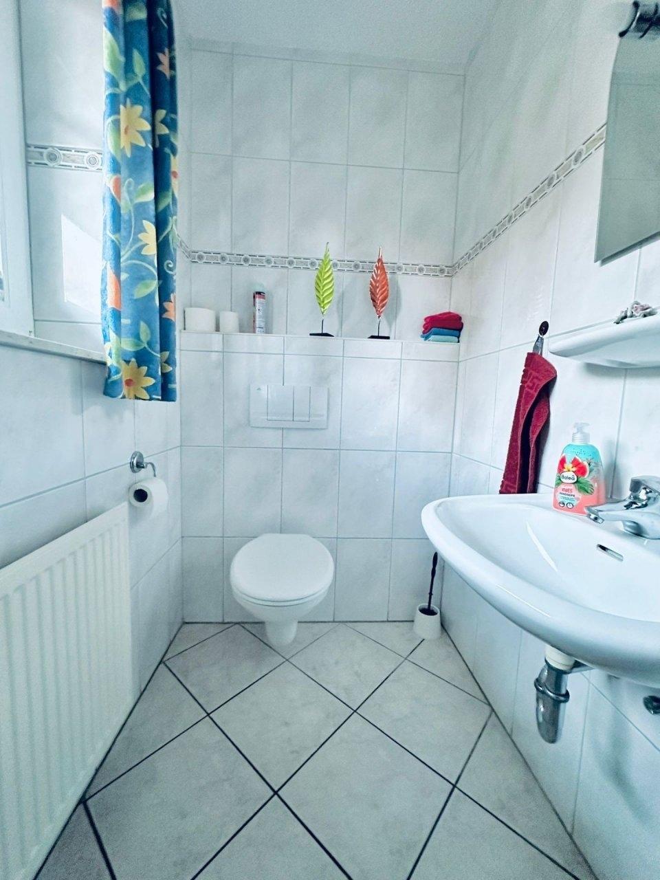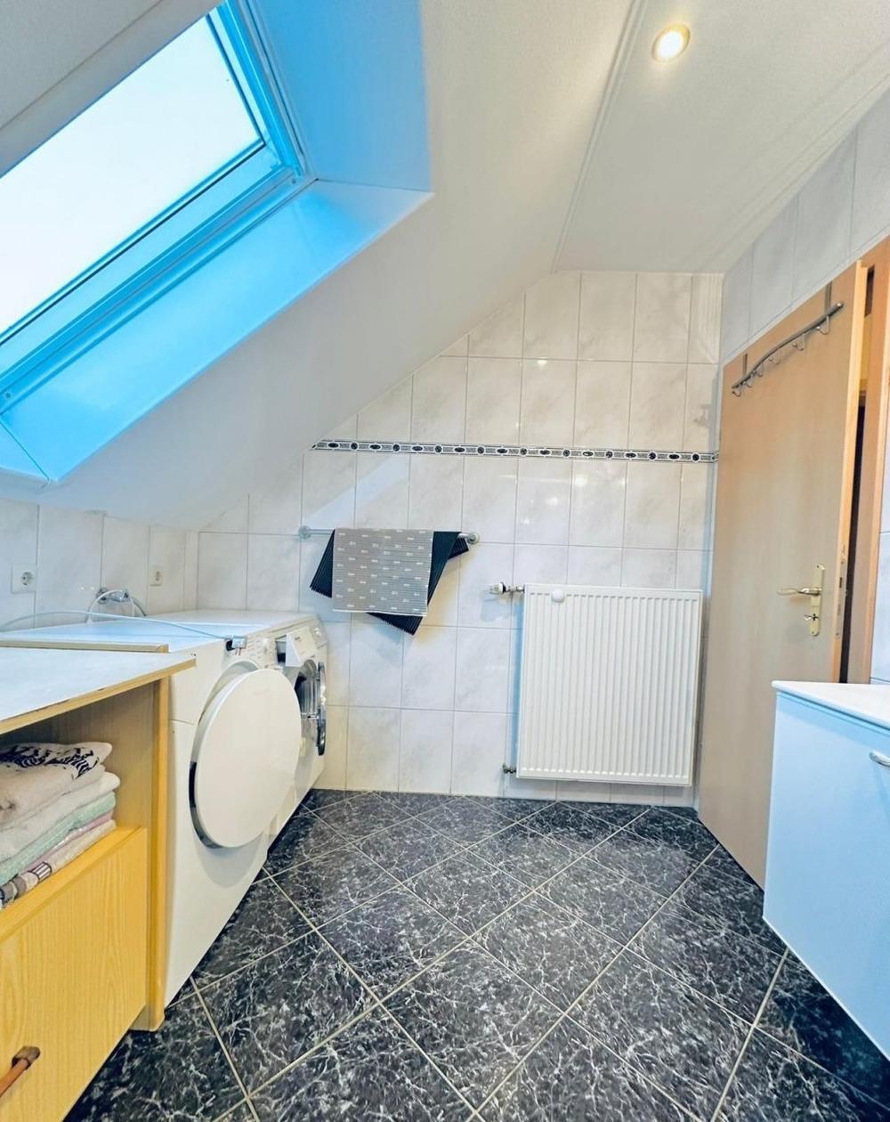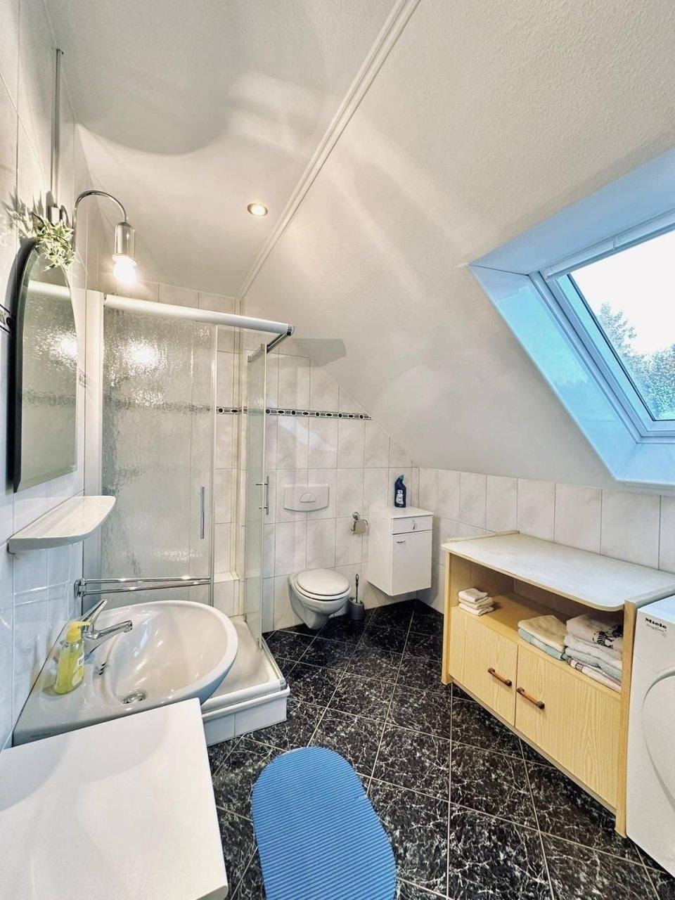 Ebenso ein Bad mit Dusche, WC, Waschmaschine und Trockner.