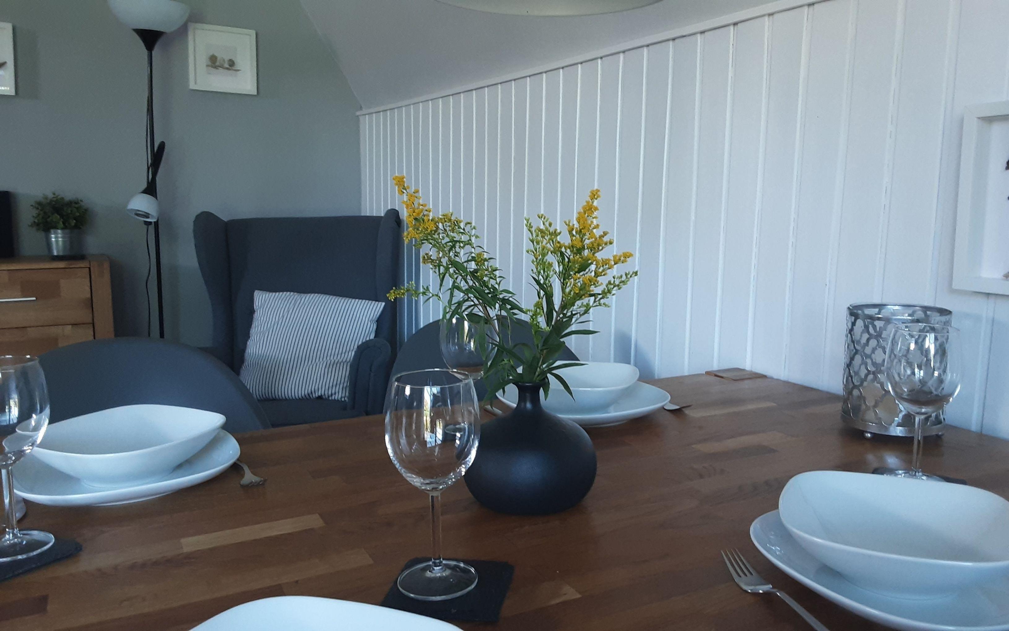 Die separate Küche ist mit allem, was Sie für die Zubereitung einer herrlichen Mahlzeit benötigen ausgestattet. Kühlschrank, Backofen, Herd, Spülmaschine und vieles mehr stehen Ihnen dafür zur Verfügung. Genießen Sie die Leckereien an dem Esstisch. Einen Kinderhochstuhl stellen wir Ihnen ebenfalls parat.