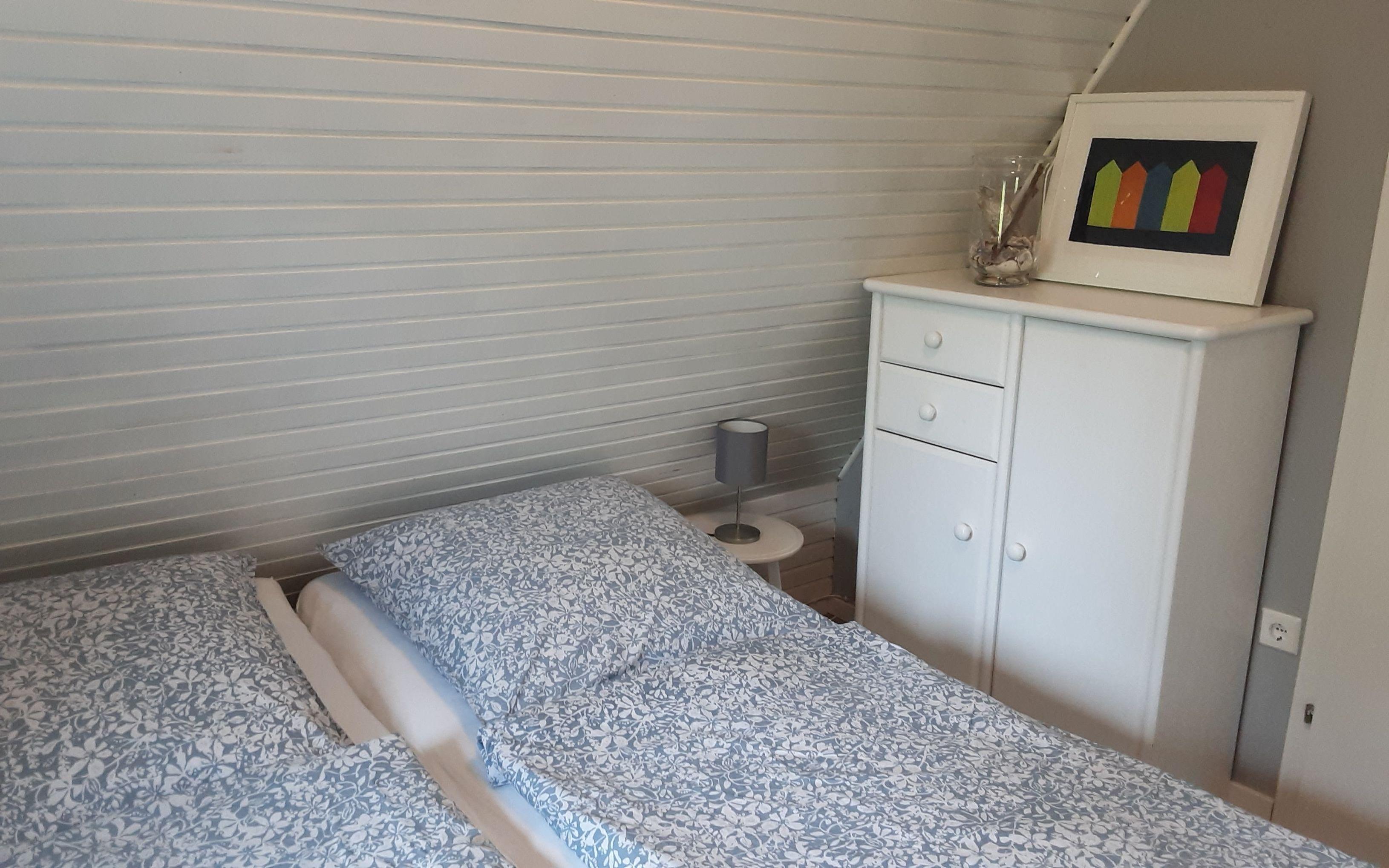 Im Obergeschoss finden Sie zwei Schlafzimmer, eines davon ist mit einem Doppelbett ausgestattet. Im zweiten Zimmer stehen zwei Einzelbetten für Sie parat um in die Traumwelt einzutauchen.