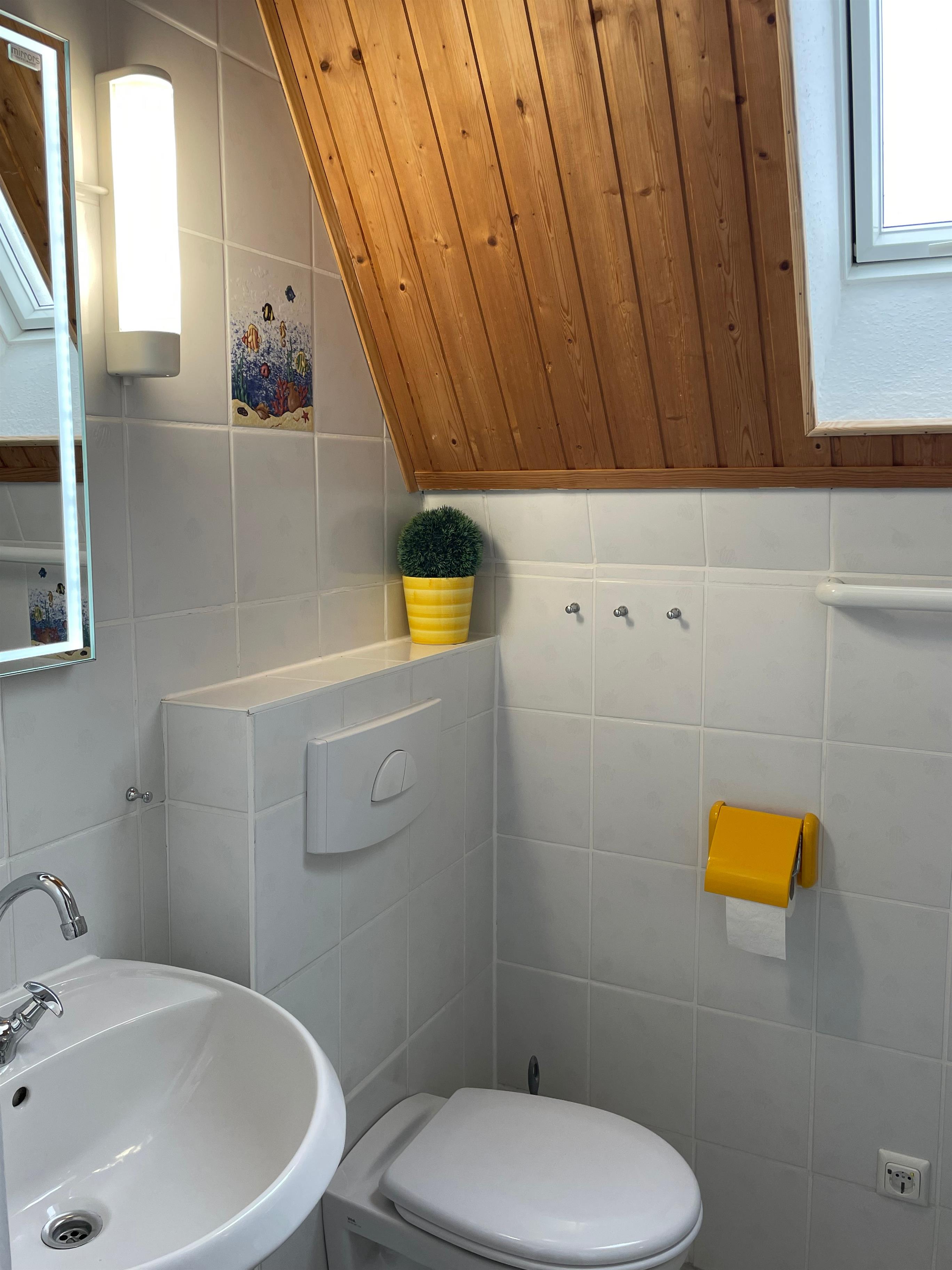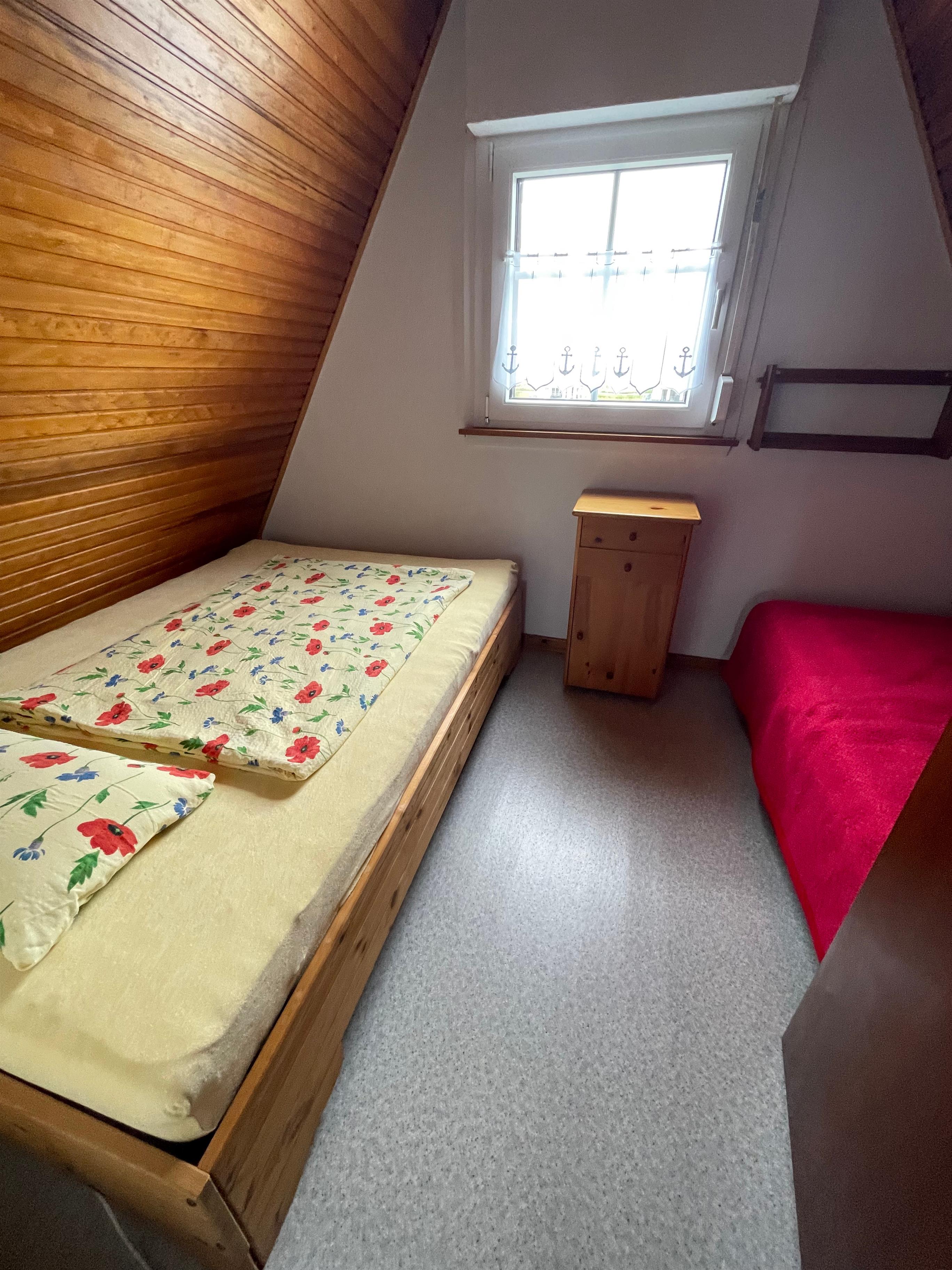 Die Einrichtung beider Häuser ist gleichwertig, gemütlich und zweckmäßig. Auf gut 60 m² haben jeweils bis vier Personen genügend Raum, um sich rund um wohl zu fühlen. Im Erdgeschoss befindet sich das Wohn-/Esszimmer mit Sitzecke, Radio, TV und Außentür zur Sonnenterrasse. Komplett eingerichtete Küche mit Mikrowelle. Bad mit Dusche und Waschmaschine. Im Obergeschoss finden Sie ein Schlafzimmer mit Doppelbett (Eltern), sowie ein weiteres Schlafzimmer mit französischem Bett und einem Einzelbett (Kinder). Großer Garten für Spiel und Spaß, eigener PKW-Stellplatz direkt am Haus.