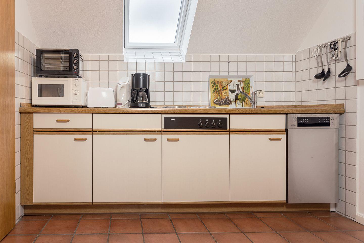 Separate Küche mit Herd, Spülmaschine, Mikrowelle etc.