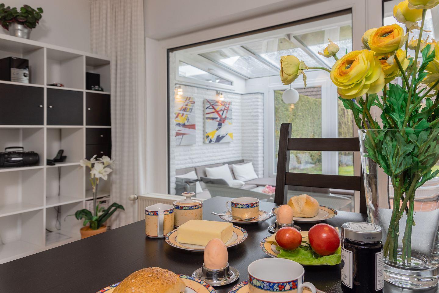 Gemütliche und helle Erdgeschosswohnung in Harlesiel, nahe dem Meer, mit Wintergarten, Terrasse und Garten.