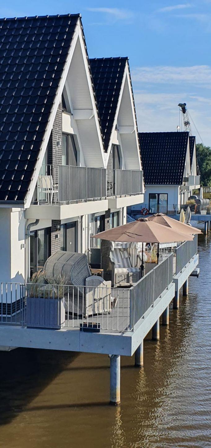 Luxuriöses Pfahlhaus Seeperle Smuk mit Sauna und Wasserblick in Harlesiel.