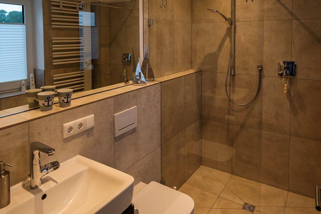 Ein geräumiges 2. Bad mit bodengleicher Regendusche und Infrarotkabine (inkl. Saunatüchern und hauseigene Bademäntel) lädt hier zum verweilen ein.