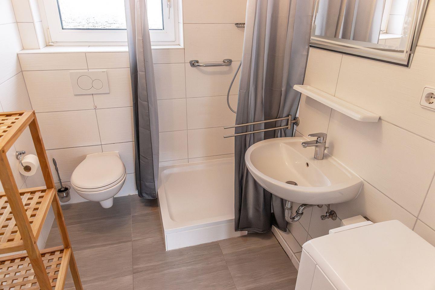 Bad mit Dusche, WC und Waschmaschine