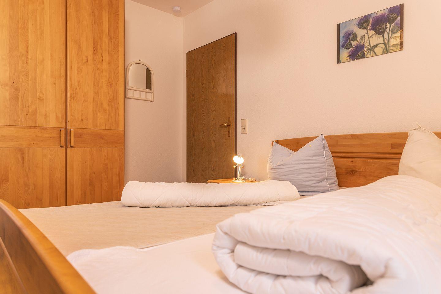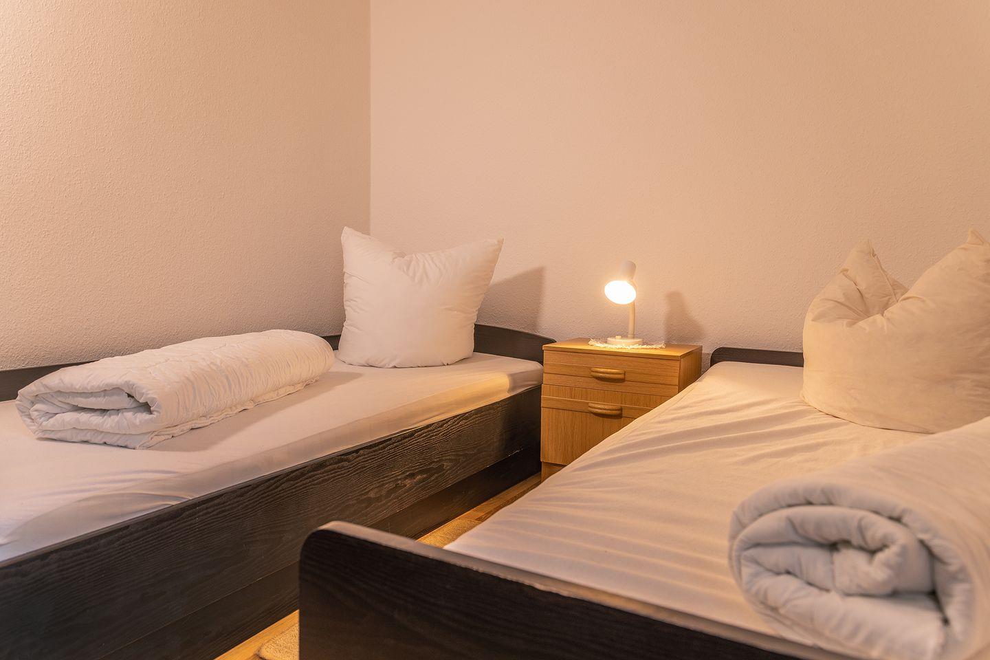 1 Schlafzimmer mit zwei Einzelbetten, zustellbares Kinderbett