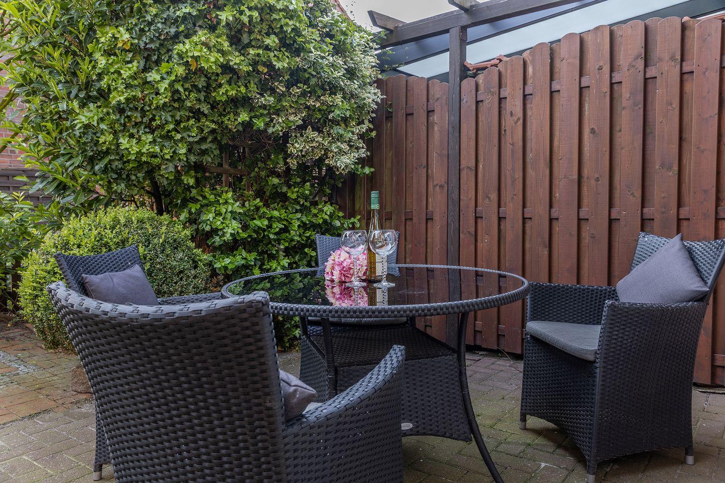 Gemütliches Reihenhaus nahe Strand mit Kamin, Terrasse und Fahrradverleih für erholsame Urlaubstage.