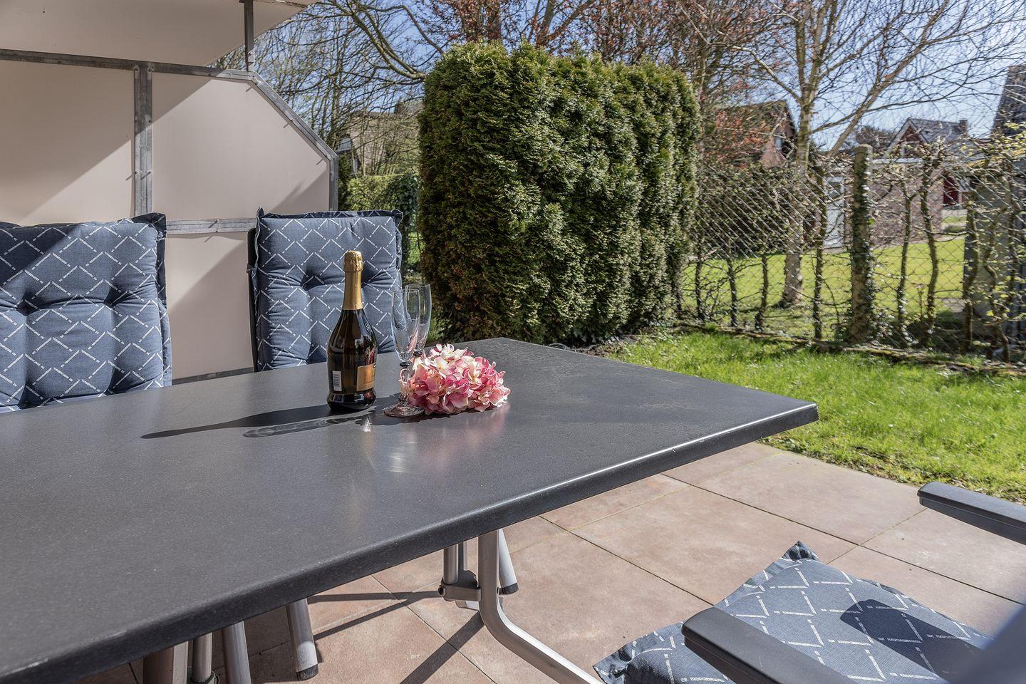 Zum Sonnen bietet sich auch in der kühleren Jahreszeit die windgeschützte Terrasse mit Abendsonne an. Der eigene PKW-Abstellplatz befindet sich direkt am Haus, Abstellraum (abschließbar) für Fahrräder vorhanden, Bollerwagen und Strandspielzeug können kostenfrei genutzt werden. Eine Gehminute zum Yachthafen und 5 Gehminuten bis zum Strand.