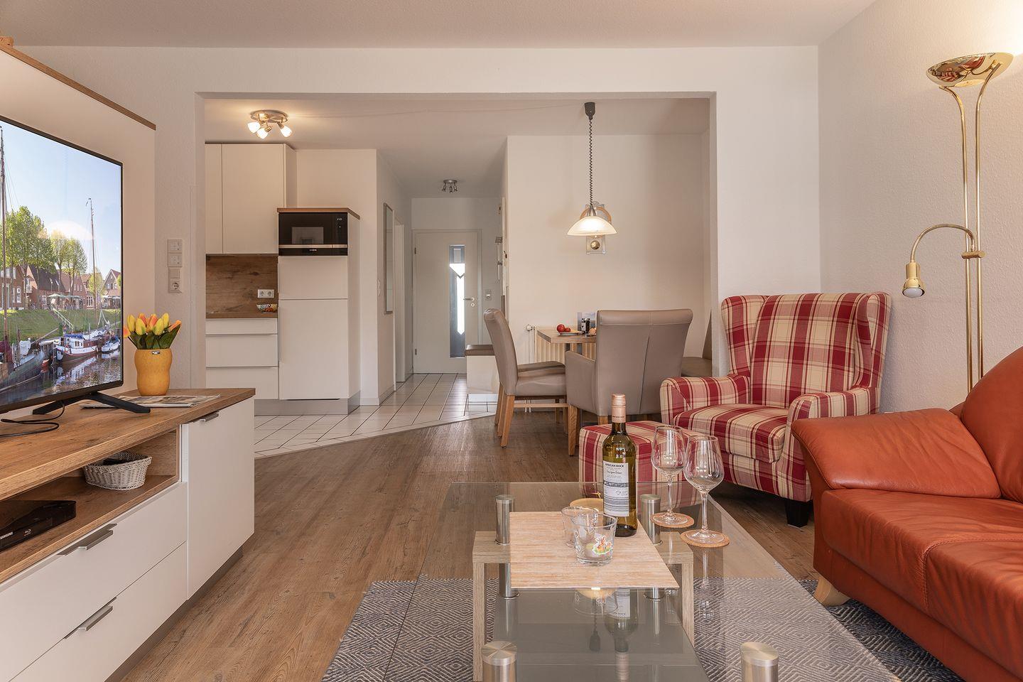 Helle, moderne Erdgeschosswohnung mit windgeschützter Terrasse und Nähe zum Yachthafen in Harlesiel.