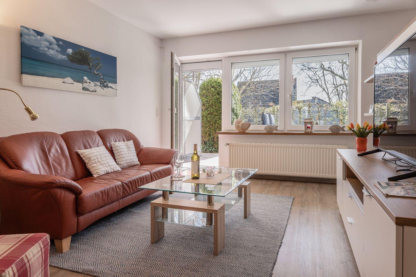 Die Wohnung wurde 2019 komplett renoviert. Es handelt sich um eine stilvolle moderne und doch gemütliche Erdgeschosswohnung für gehobene Ansprüche. Die Ferienwohnung ist am besten für Paare und Familien geeignet, die etwas Platz zum Erholen wünschen. Die Wohnung verfügt über einen offenen und großen Wohn-/Essbereich mit abgetrenntem Schlafbereich, zusätzlich ein separates Schlafzimmer mit Doppelbett, eine umfangreich ausgestattete Küche mit Backofen, Spülmaschine, Mikrowelle sowie ein geräumiges Bad mit ebenerdiger Dusche, WC und Waschmaschine. Zum Sonnen bietet sich auch in der kühleren Jahreszeit die windgeschützte Terrasse mit Abendsonne an. Der eigene PKW-Abstellplatz befindet sich direkt am Haus, Abstellraum für Fahrräder vorhanden, Bollerwagen und Strandspielzeug können kostenfrei genutzt werden. 1 Gehminute zum Yachthafen und 5 Gehminuten bis zum Strand.