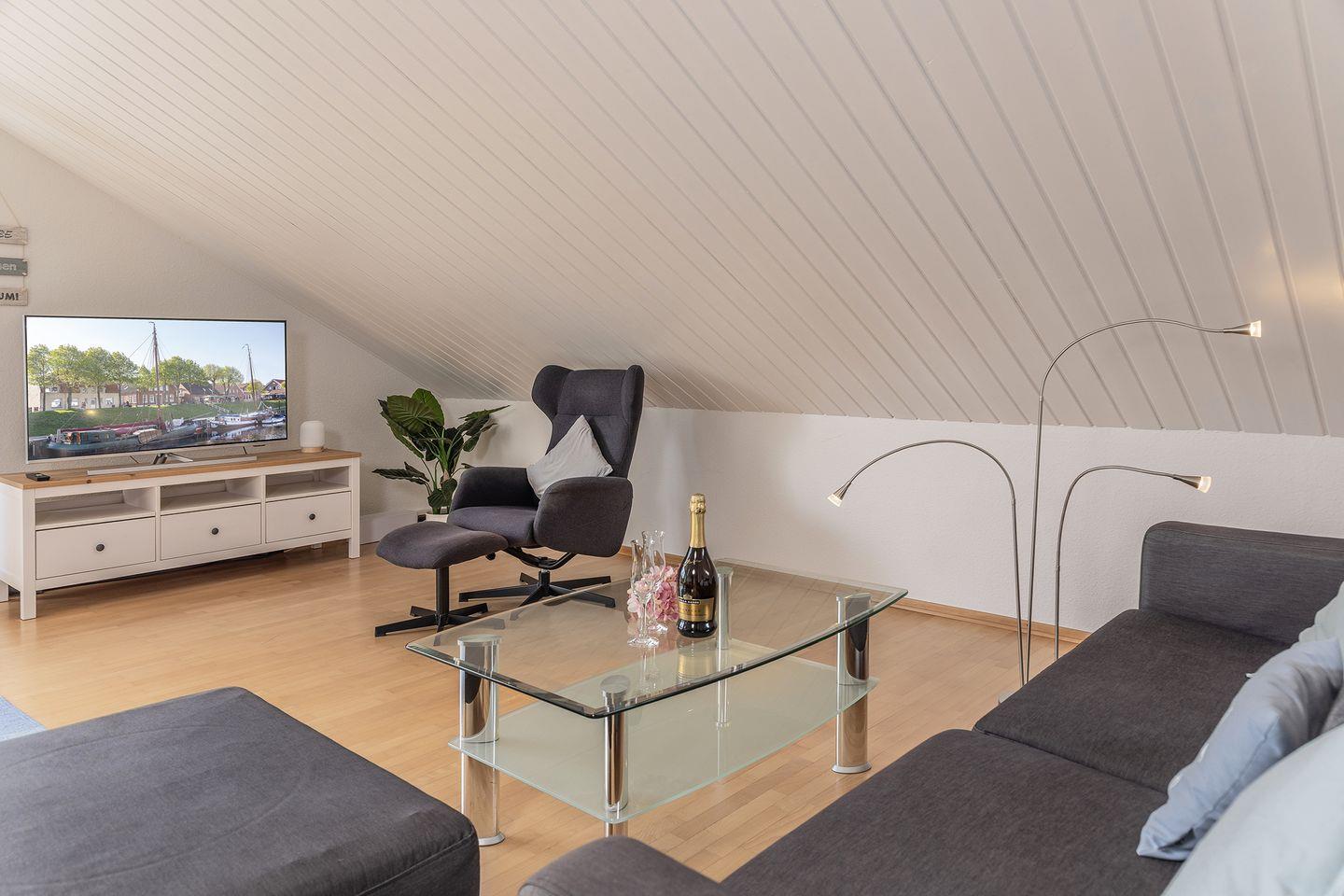 Die Obergeschosswohnung mit ca. 60 qm bietet gemütliches Ambiente und liegt direkt am Yachthafen, in dem zahlreiche Segelschiffe und Motoryachten während der Sommersaison beheimatet sind.