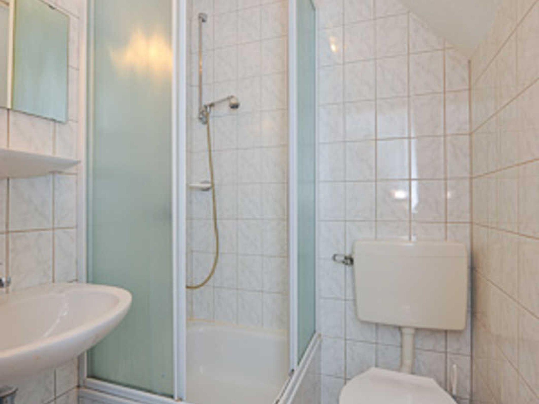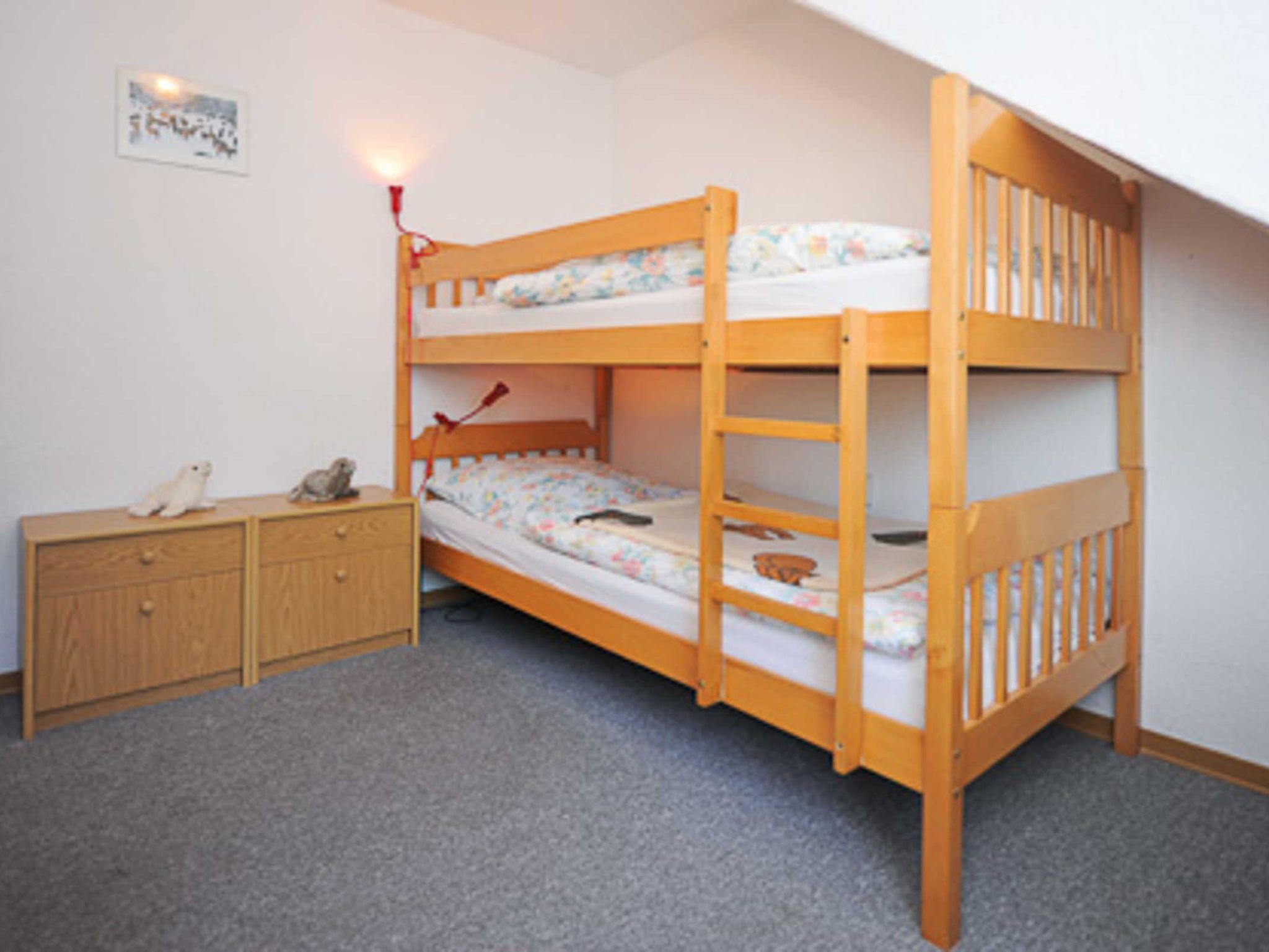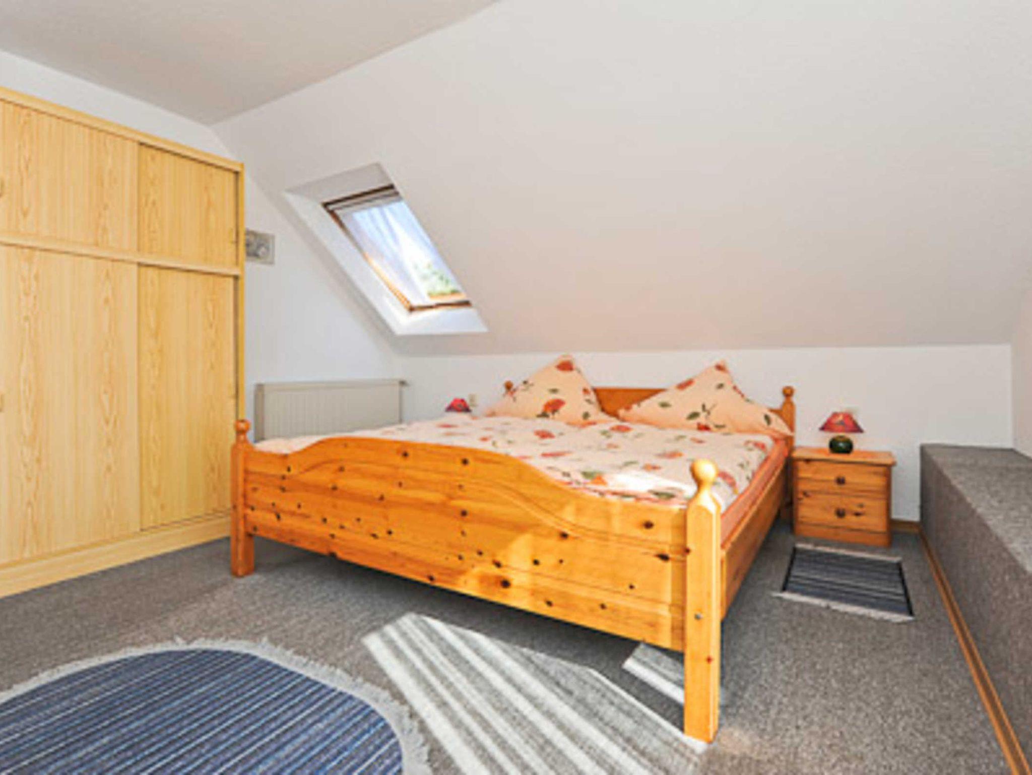 Größe ca. 50 Quadratmeter, Wohnraum mit integrierter Küche, Schlafzimmer, Kinderzimmer, Badezimmer mit Dusche, Waschtisch und WC, Obergeschoss, Garten, optimal für 2 bis 4 Personen.