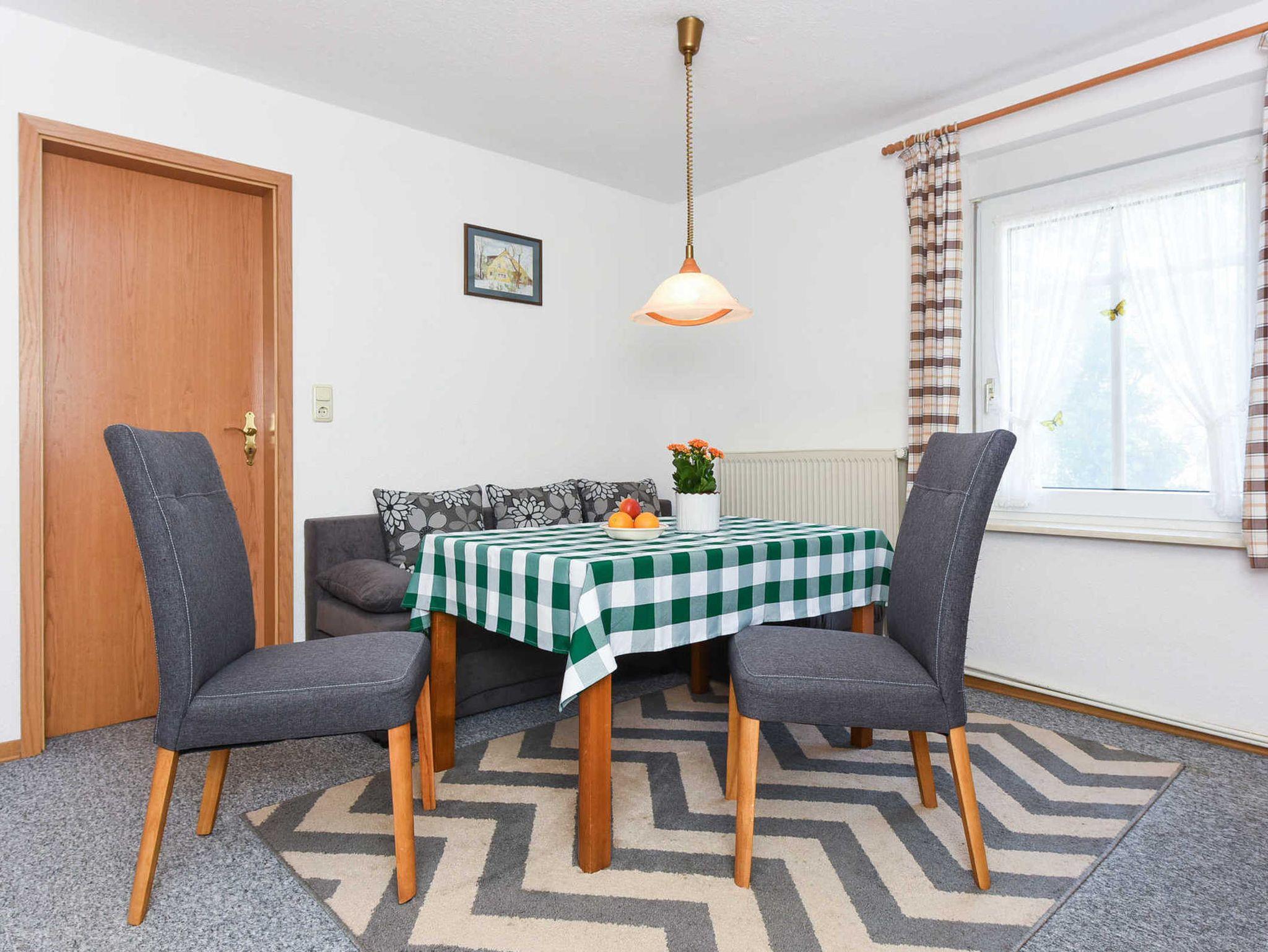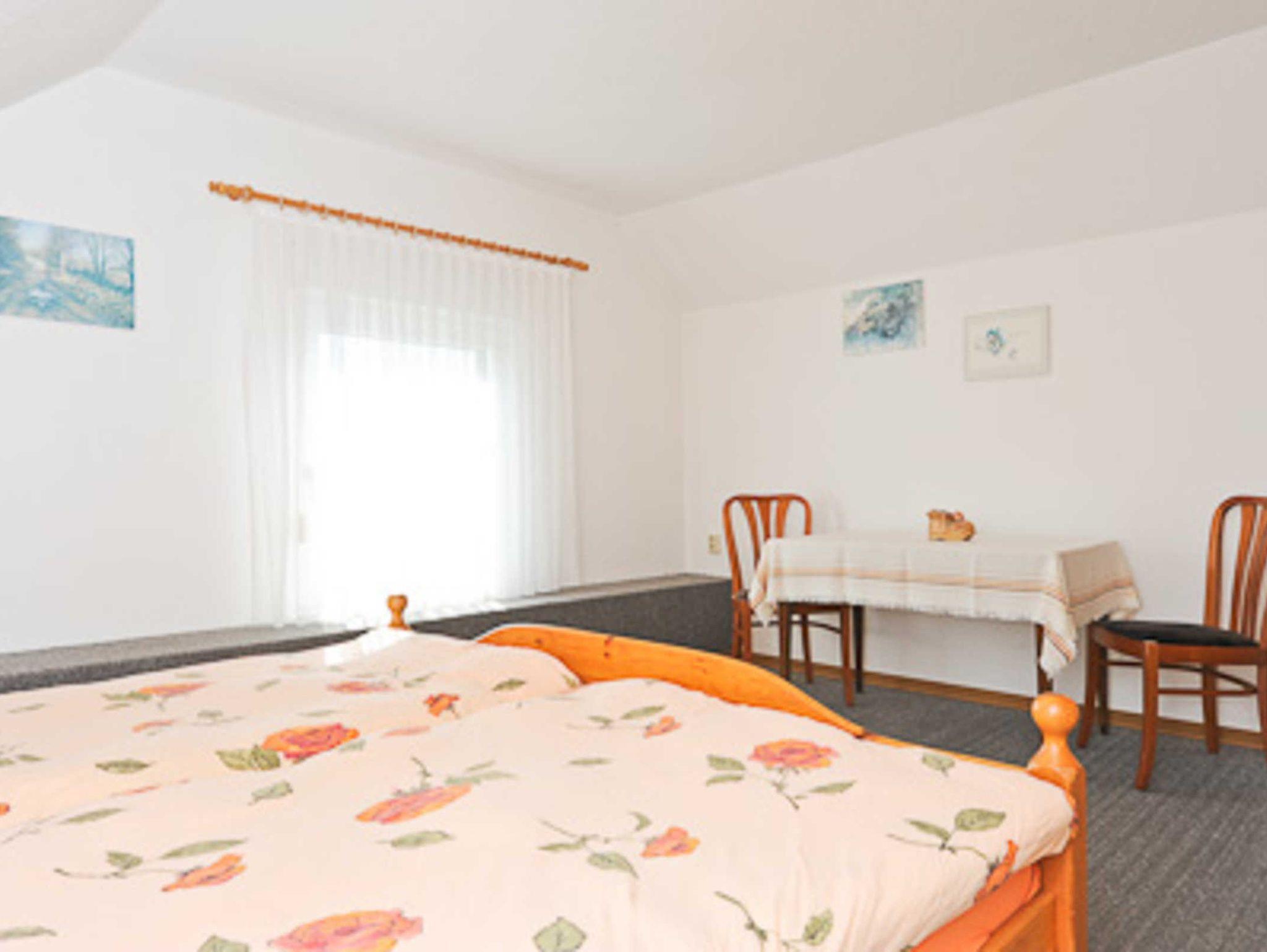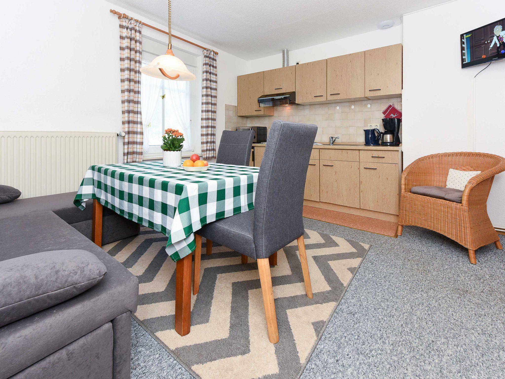 Größe ca. 50 Quadratmeter, Wohnraum mit integrierter Küche, Schlafzimmer, Kinderzimmer, Badezimmer mit Dusche, Waschtisch und WC, Obergeschoss, Garten, optimal für 2 bis 4 Personen.
