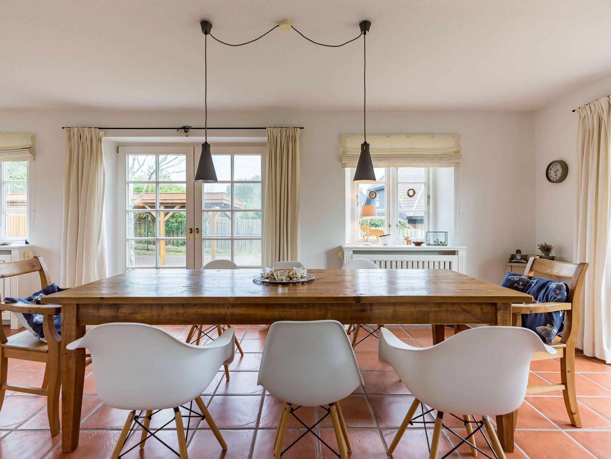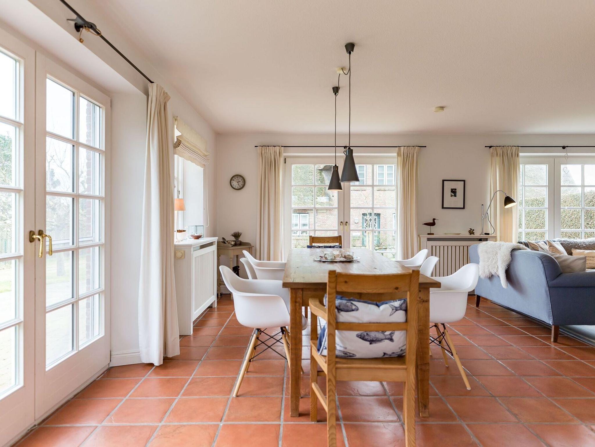 Nur wenige Gehminuten vom Meer und Naturstrand entfernt liegt das sehr gepflegte Reetdachobjekt auf einem 500 qm großen Grundstück an der Traumstraße. Hier können Sie Nordseeurlaub pur genießen. Morgens weht der Wind die salzhaltige Luft vom Meer direkt durch Ihre großzügige Haushälfte mit einem lichtdurchfluteten Wohn- und Essbereich. Entweder gehen Sie nun sofort schwimmen oder Sie genießen einfach einen schönen Tag im Haus oder auf einer der beiden Sonnenterrassen. Die gemütlich eingerichtete Haushälfte bietet jede Menge Platz und viel Komfort für einen erholsamen Urlaub!