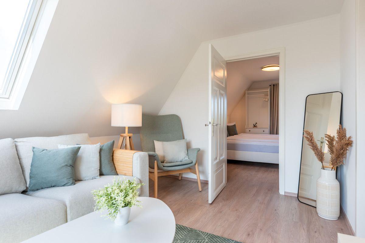 Moderne Ferienwohnung in Hedehusum mit Balkon, Meerblick und Garten für entspannte Urlaubstage an der Nordsee.