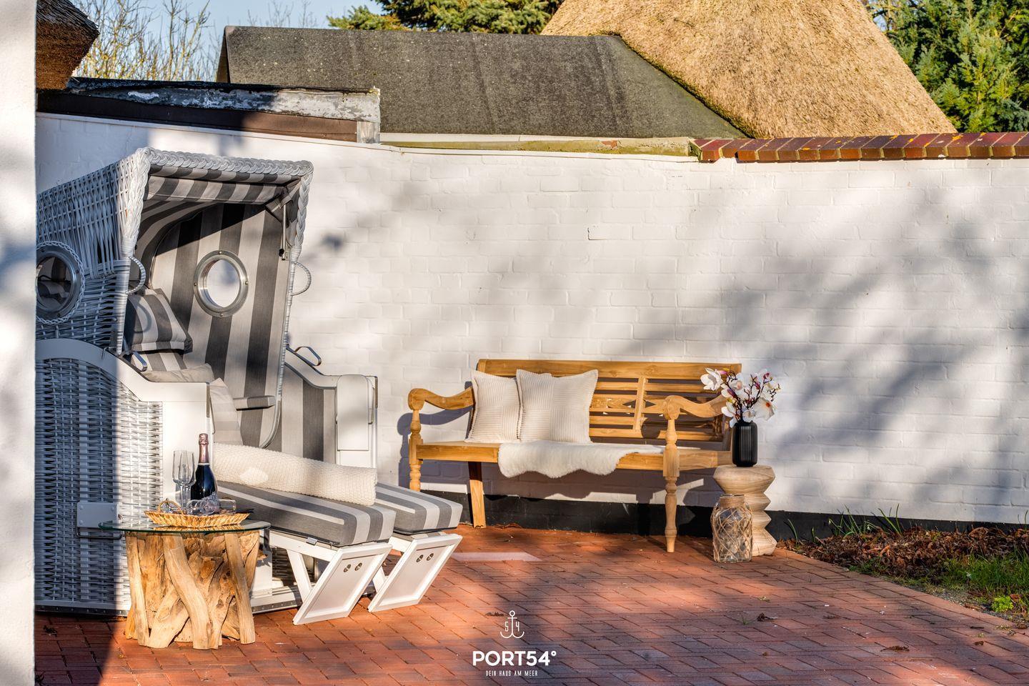 Auf der Terrasse können Sie im Strandkorb entspannen und den ganzen Tag über das herrliche Wetter und den atemberaubenden Ausblick genießen – von Sonnenaufgang bis Sonnenuntergang.