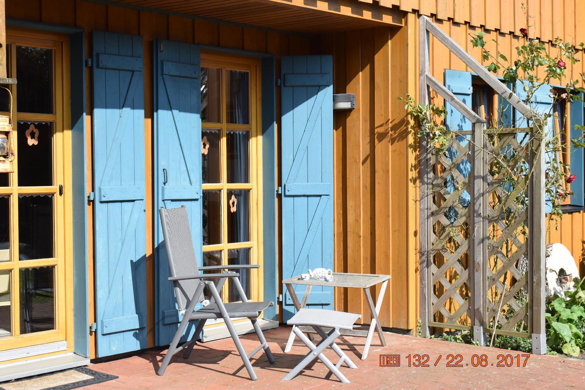 Das Haus hat eine Südterrasse und eine Nordterrasse mit Gartenstühle, Tisch und 2 Liegestühle. Ein großer Sonnenschirm und Grill. Für die kleinsten Gäste ist ein kleiner Sandkasten vorhanden.