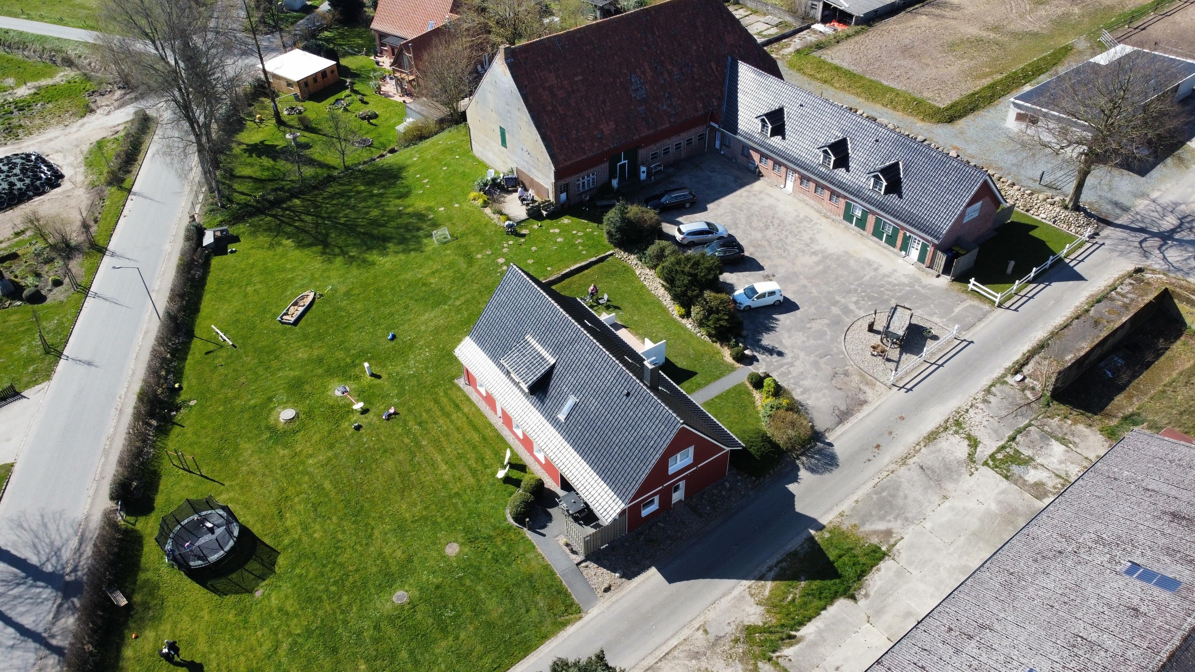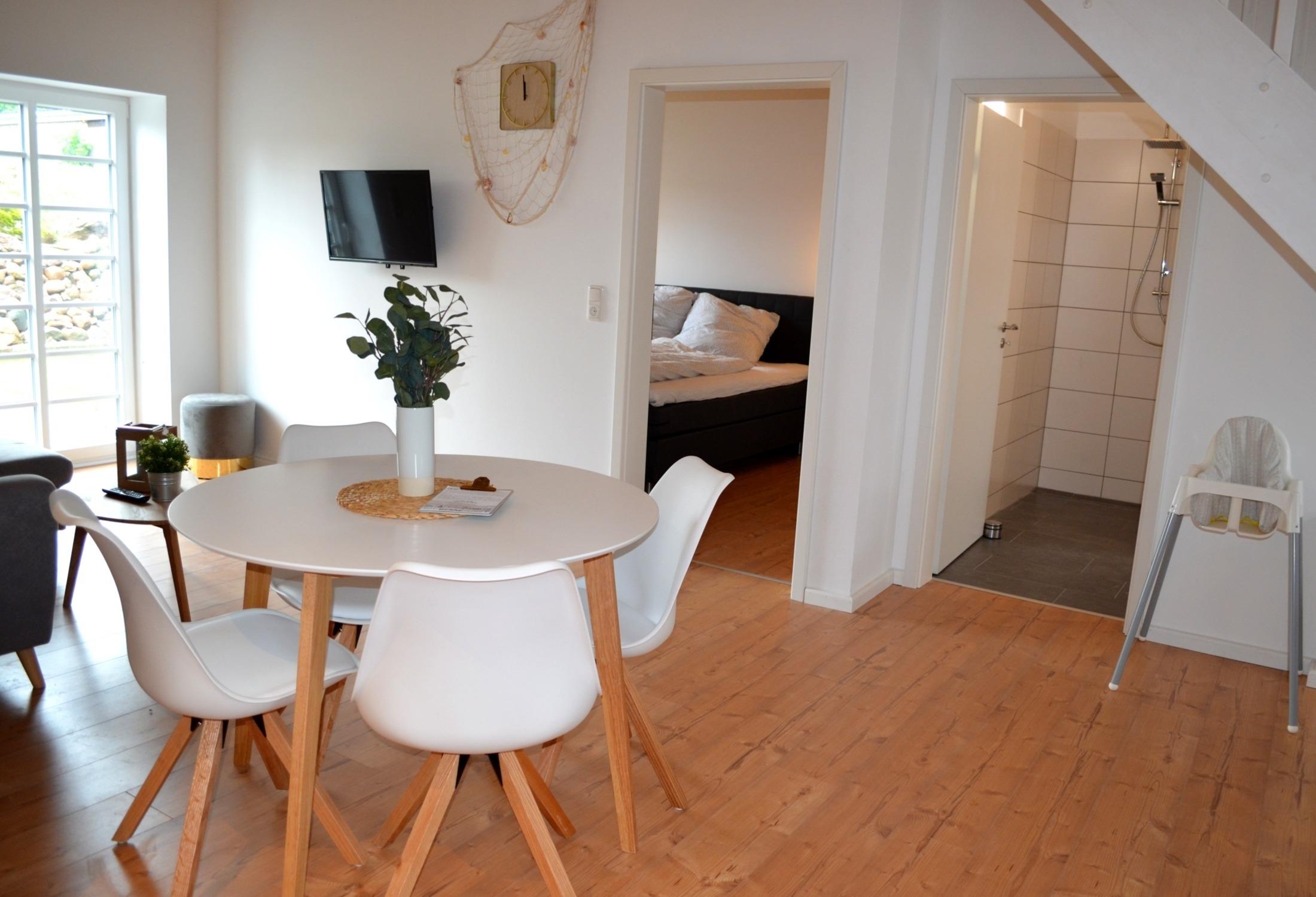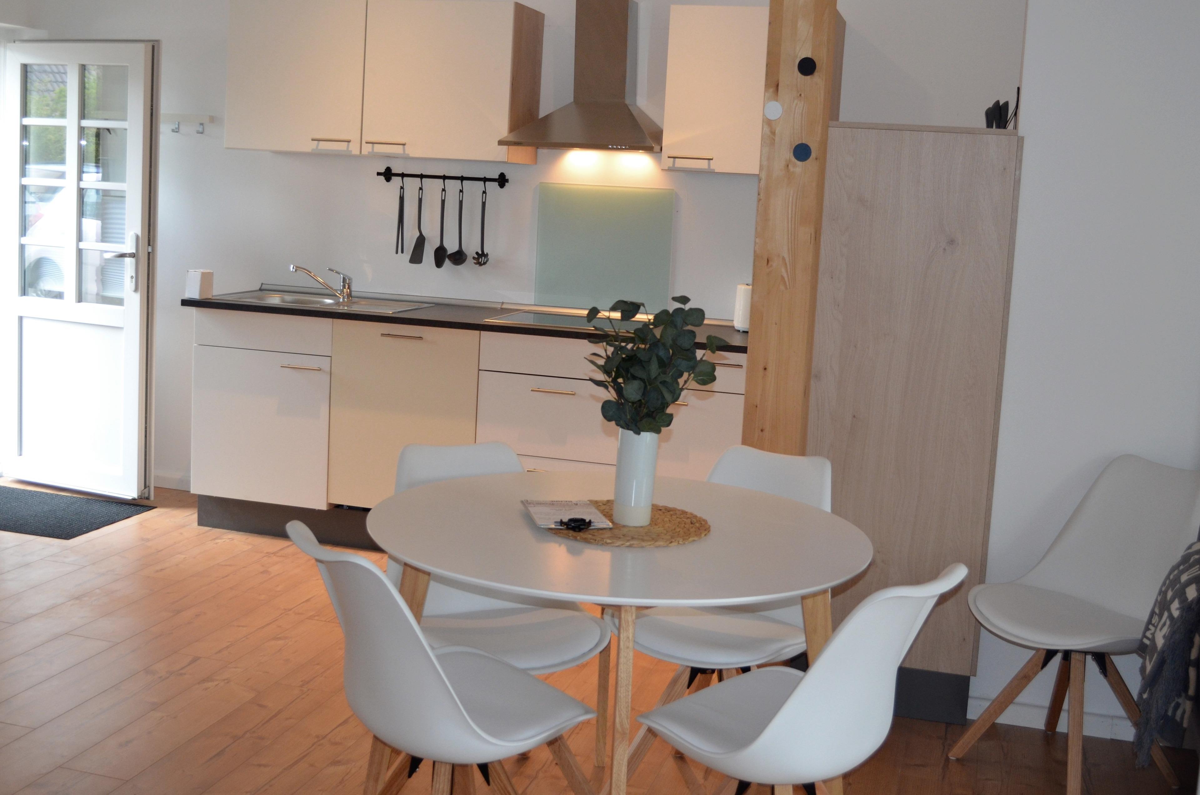 Die Ferienwohnung befindet sich im kernsanierten Stallgebäude und verfügt über eine angrenzende Terasse inkl. Grill und Feuerschale.
