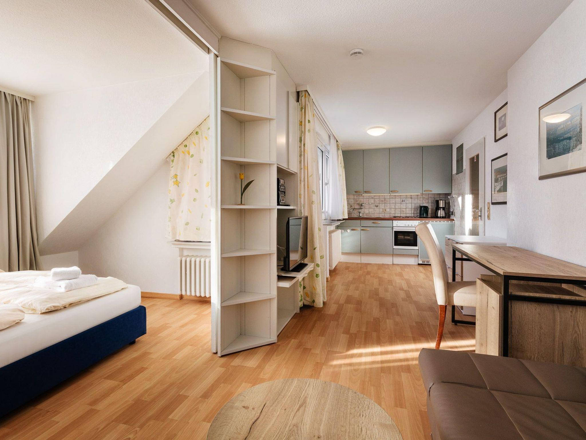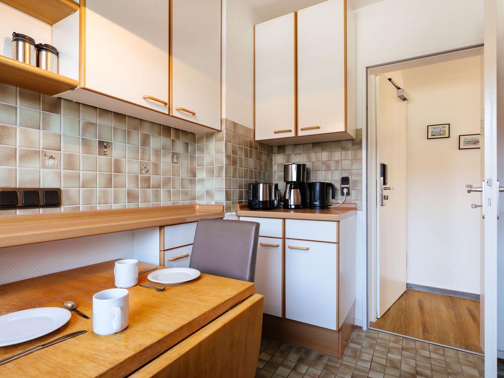 Alle Apartments und die Ferienwohnung verfügen über Pantry-Küchen, Flat-TV und kostenloses W-LAN. Selbstverständlich dürfen Sie eine Kaffeemaschine, einen Wasserkocher, einen Fön und Bettwäsche voraussetzen.