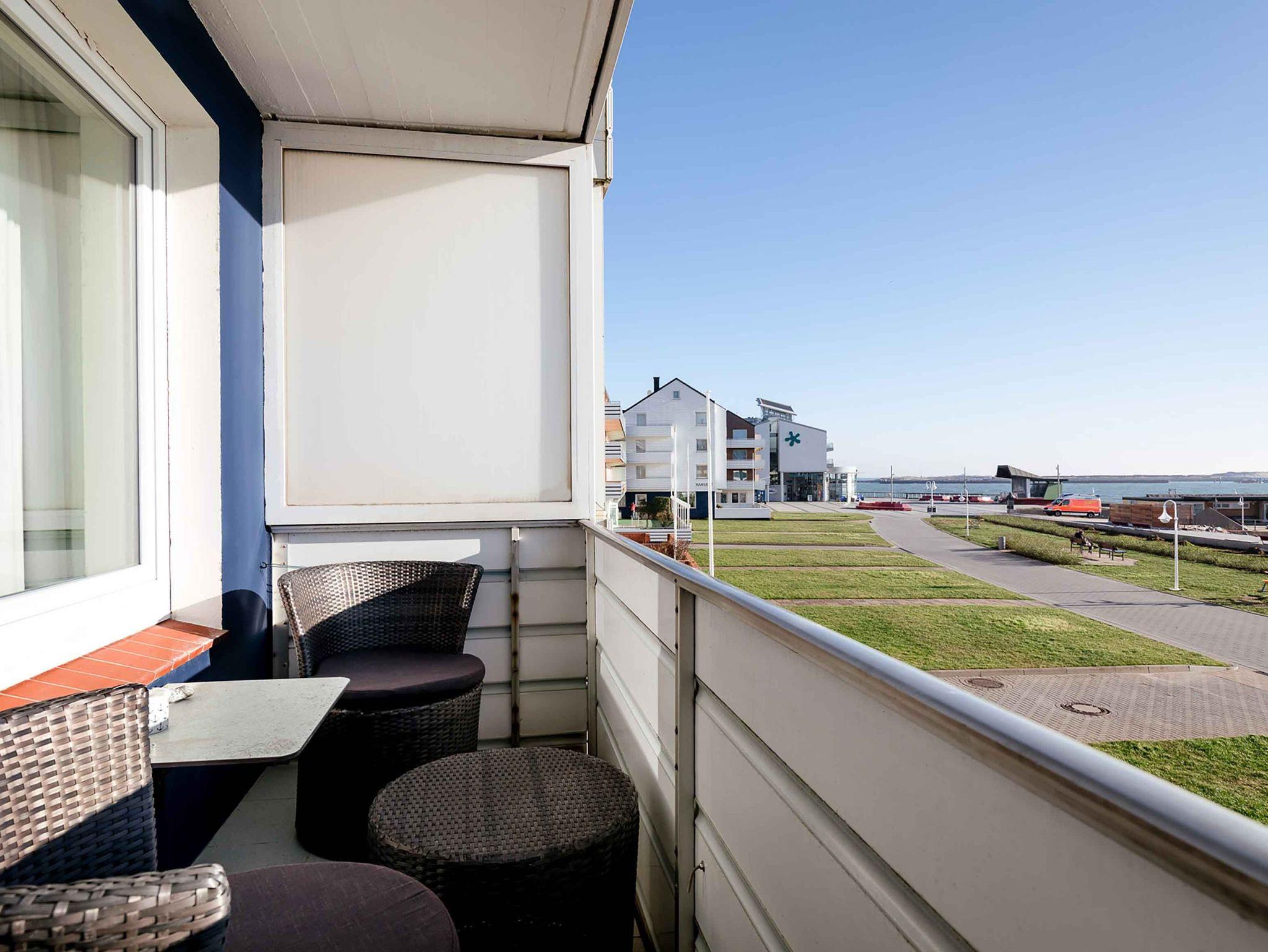 Moderne Ferienwohnung mit zwei Balkonen und Meerblick direkt am Südstrand Helgolands.