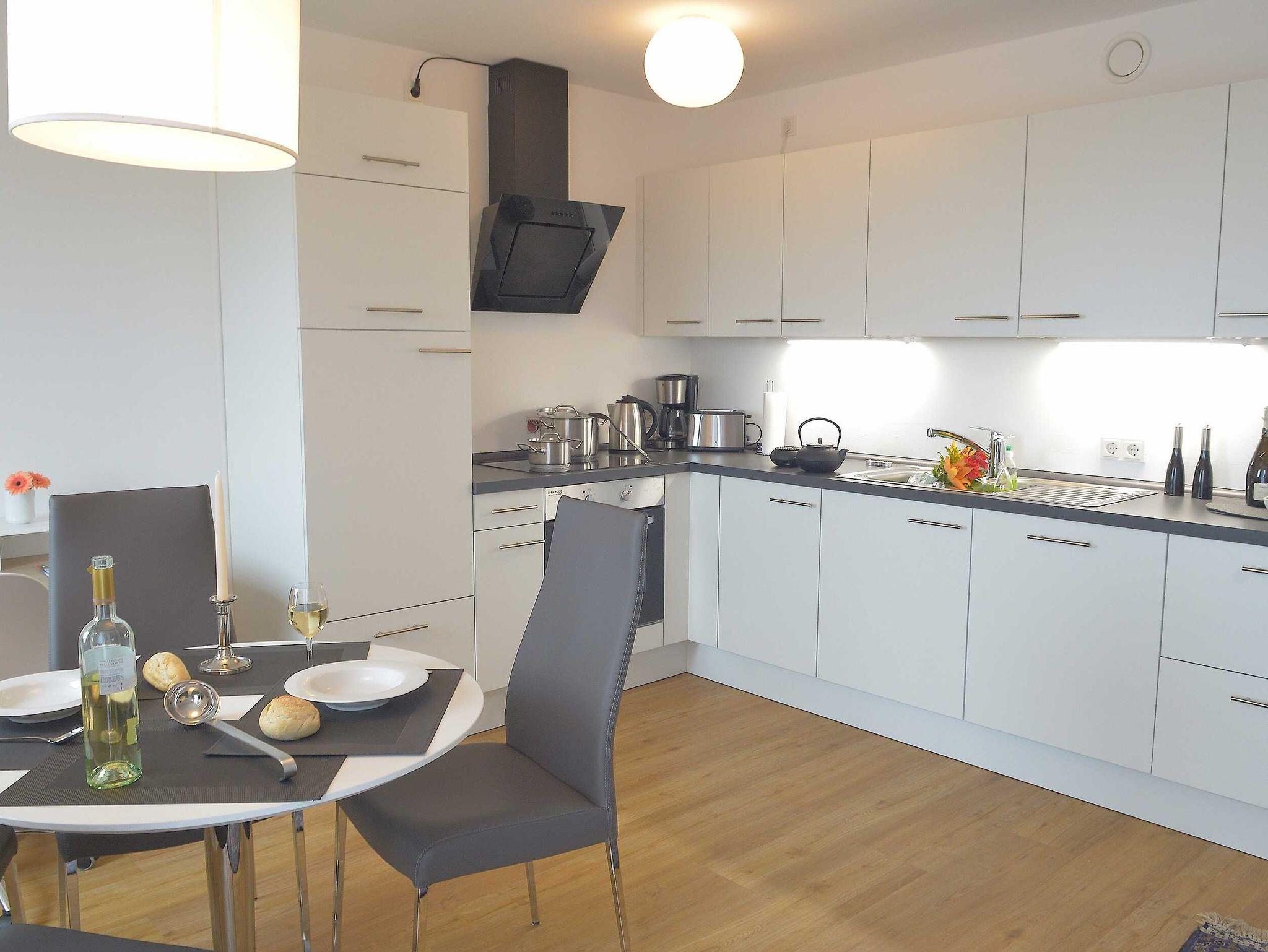 Die luxuriöse Wohnung hat ca. 55 qm Wohnfläche und befindet sich im Erdgeschoss. Der Wohnbereich mit offener, komplett ausgestatteter Küche und Essplatz hat einen Zugang zur Terrasse und einen unverbauten Blick auf die Nordsee und das grüne Oberland. Eine zweite Terrasse befindet sich auf der südlichen Sonnen-Seite der Wohnung.