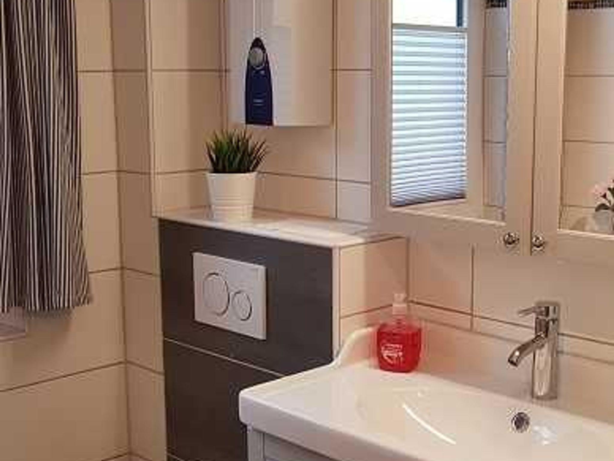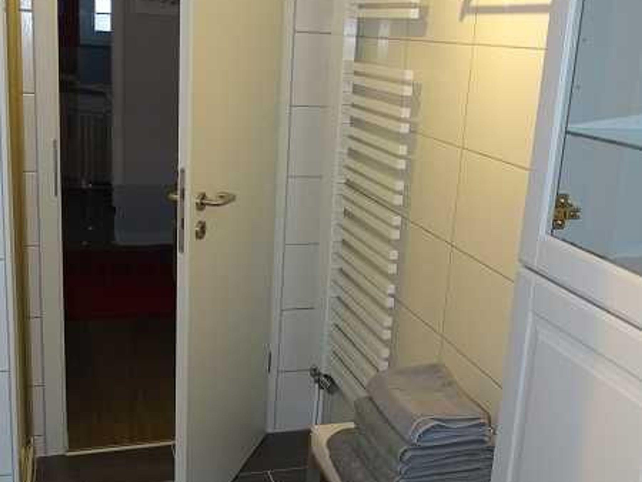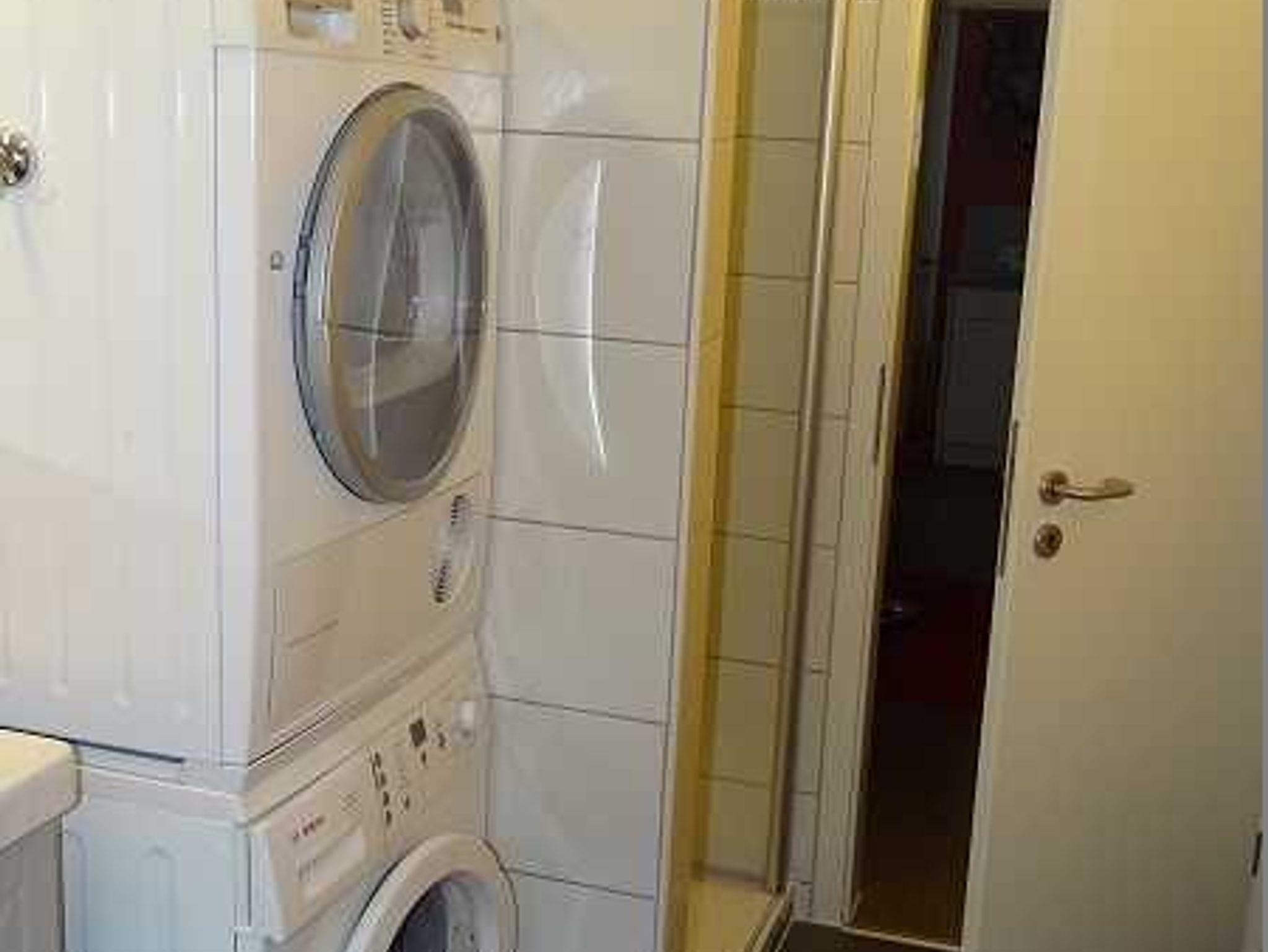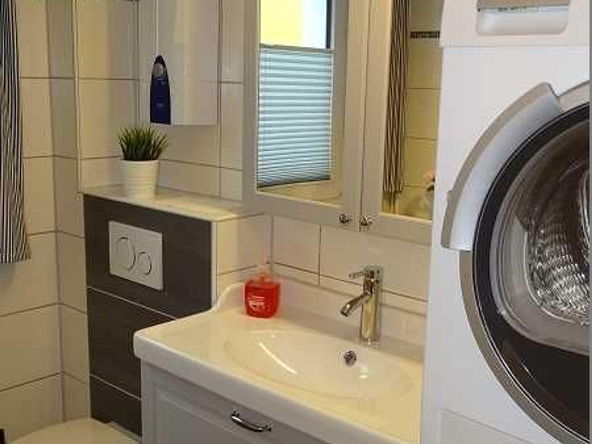 ·Badezimmer mit Dusche, Waschtisch, WC, Waschmaschine u. Trockner. Bettwäsche und Handtücher gehören zur Wohnungsausstattung und sind im Preis enthalten.