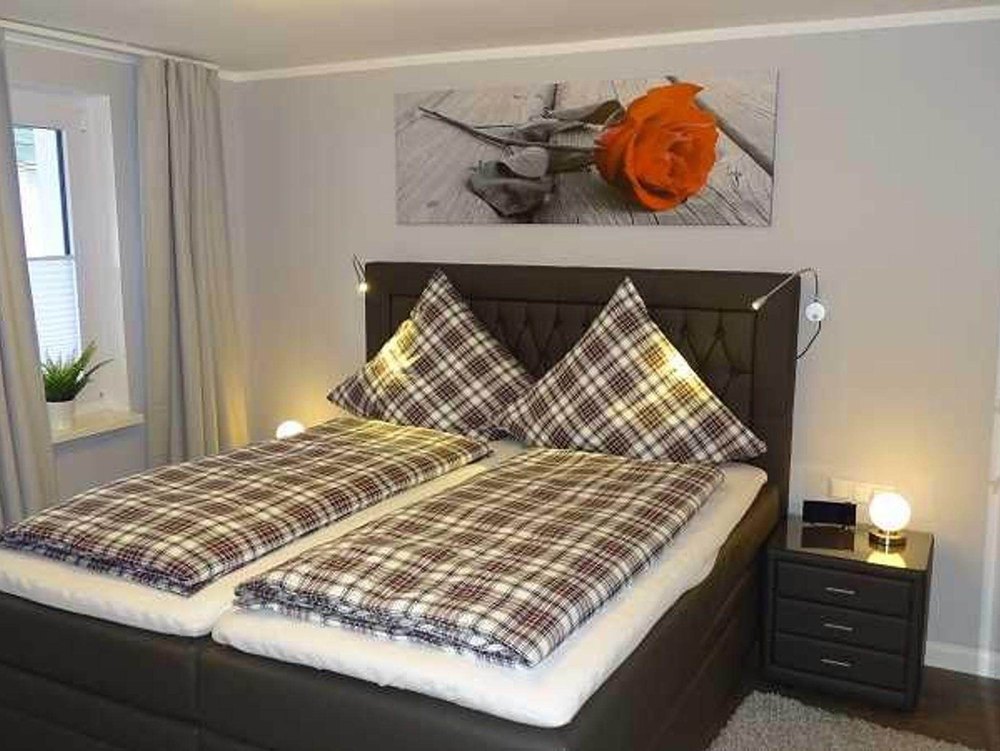 ·Schlafzimmer: wohnlich eingerichtet mit hochwertigen, Lederboxspringbetten, Liegehöhe inkl. 7 cm hohem Gel-Topper = 72 cm. 55 TV.