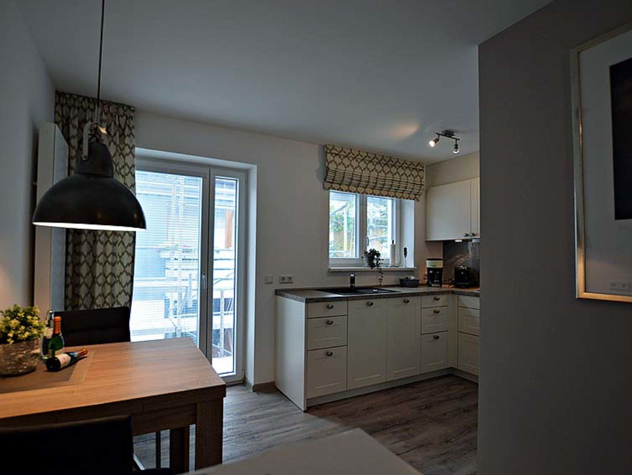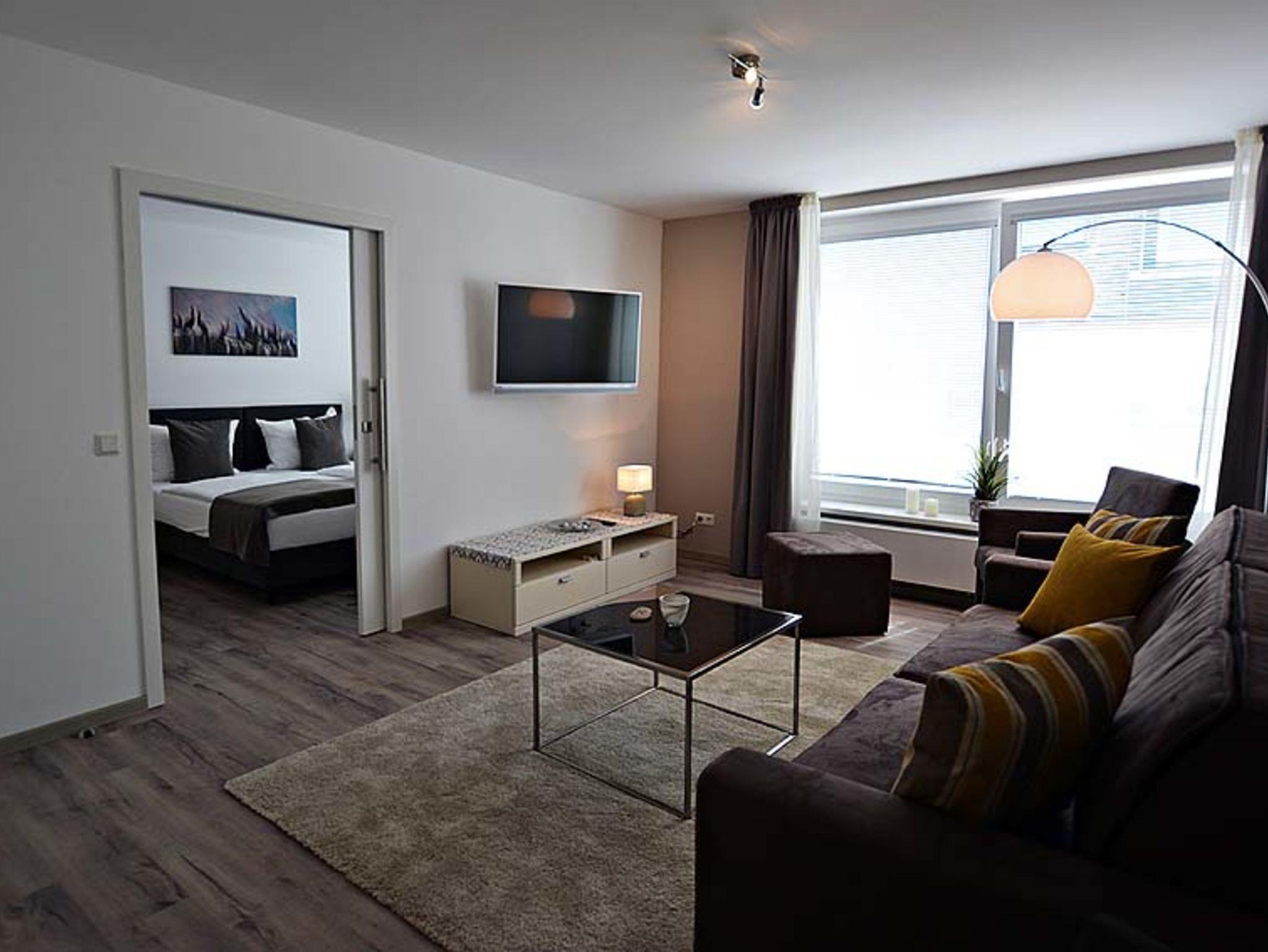 Großzügiges Komfort App. mit exclusiver Ausstattung, 52 qm groß mit Balkon. Großes Bad mit begehbarer Dusche. TV in Wohn und Schlafzimmer. Komplett eingegrichtete moderne Küche.