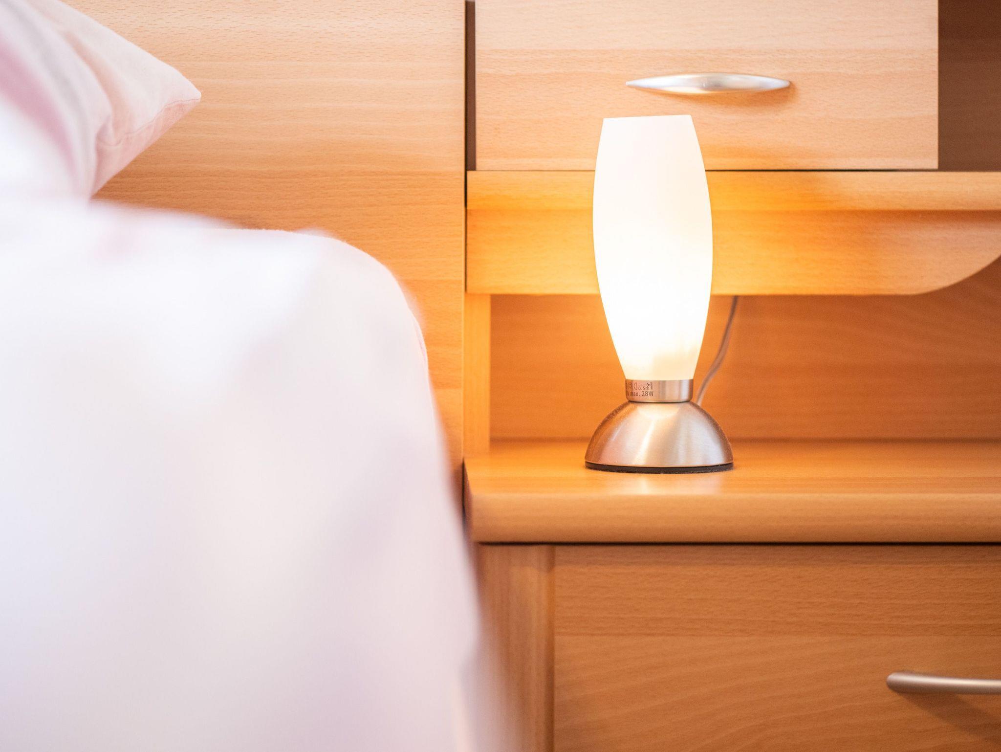 Im Schlafzimmer stehen ein großer Kleiderschrank und ein Doppelbett (2,00 x 2,00 m) mit normaler Einstiegshöhe.