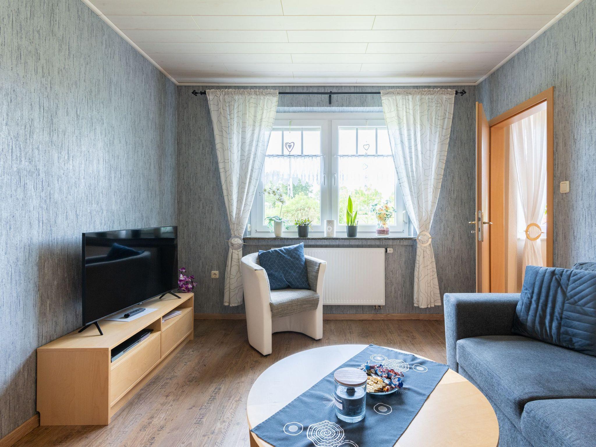 Das Wohnzimmer ist mit SAT-TV und eine ausziehbaren Schlafcouch (1,40 x 2,00 m) ausgestattet.