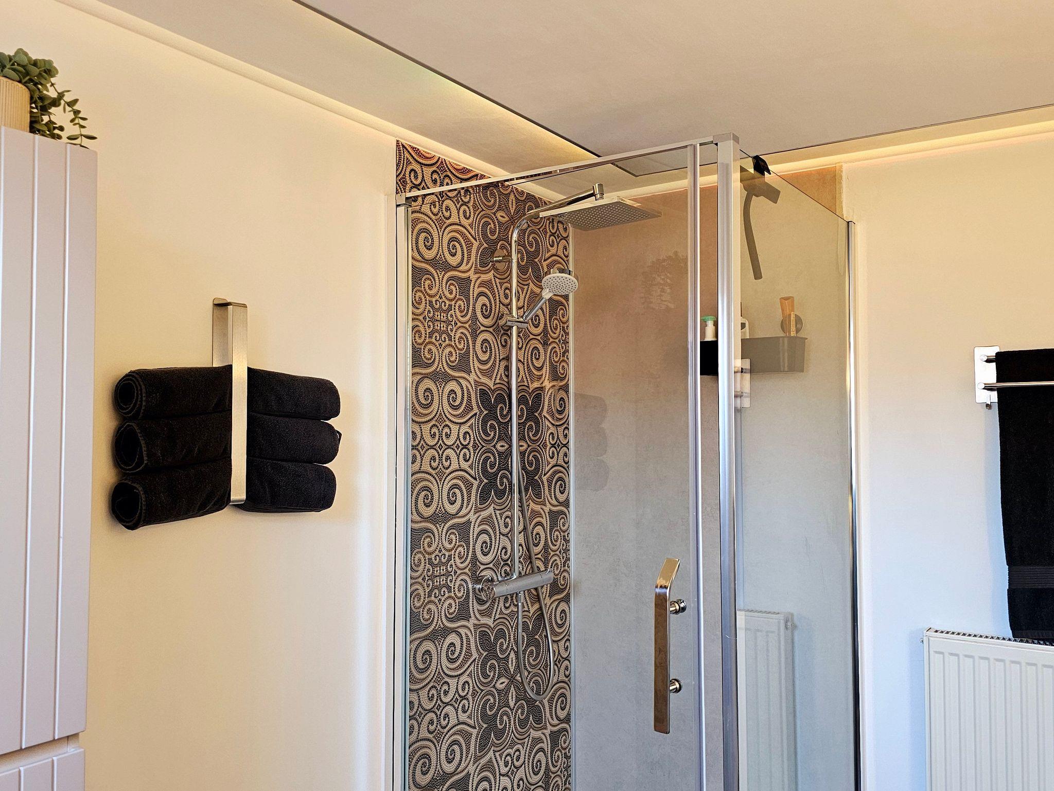 Im Schlafzimmer wartet ein gemütliches Kingsize Bett mit einer Größe von 180x200 cm. Das Badezimmer ist mit einer Regendusche ausgestattet. Im Heizungsraum befindet sich eine neue Waschmaschine zur optionalen Nutzung. Für zwei Fahrräder steht eine abschließbare Garage mit Lademöglichkeit (E-Bikes) zur Verfügung.