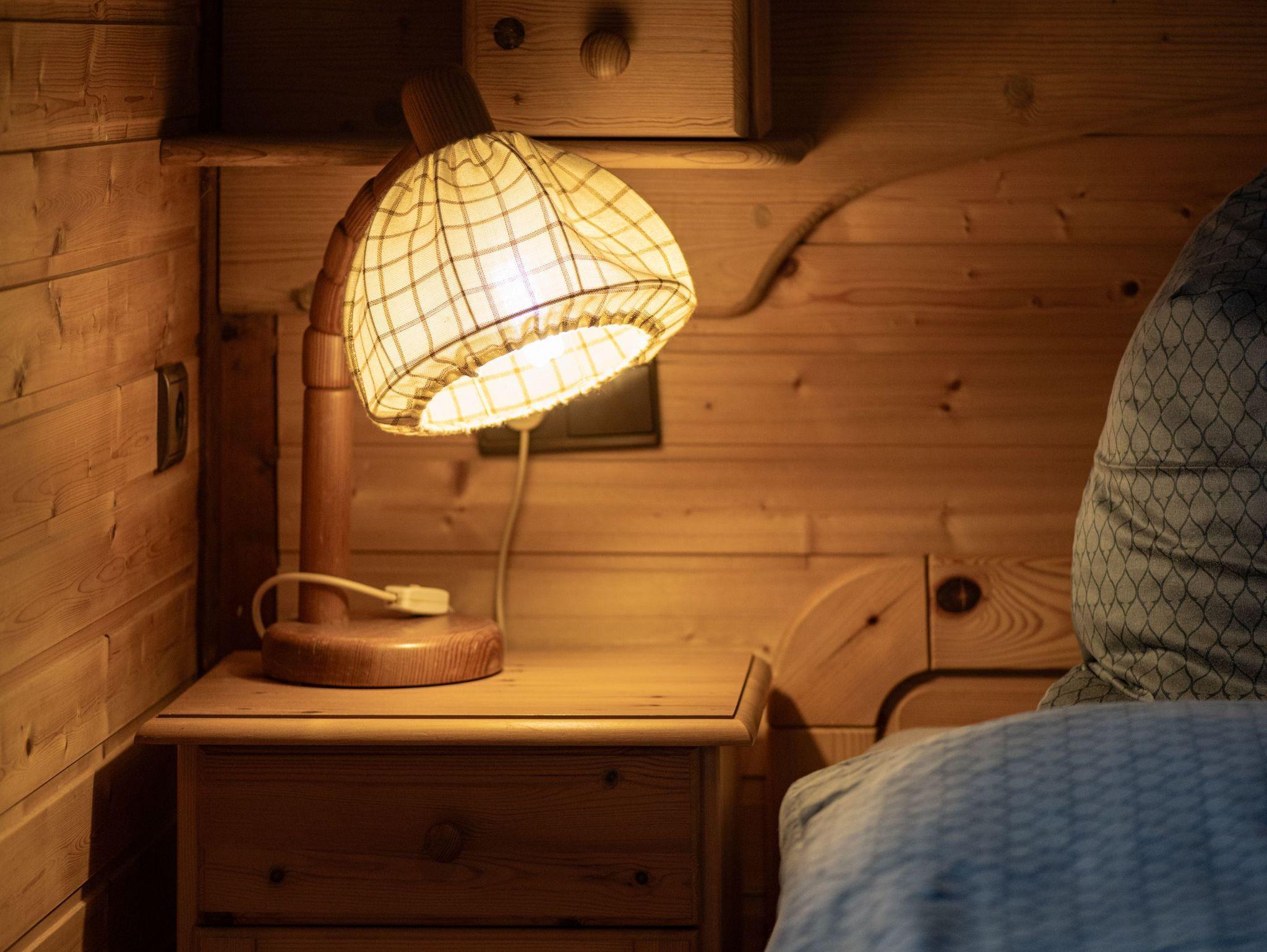 Das Blockhaus verfügt über zwei sep. Schlafräume und einen großen Wohngereich mit einer offenen Küche, die sich im halbkreis und durch eine Theke abgrenzt. Der Wohnraum ist lichtdurchflutet und hat einen kleinen Kaminofen für die kühleren Abende. Eine gemütliche Wohngarnitur (Ostfriesensofa mit zwei einzelne Sessel) und ein rechteckiger Esstisch mit vier Korbstühlen befinden sich im Wohn-/Küchenbereich. Ein Schlafraum verfügt über ein Doppelbett (1,80m x 2,00m) und im zweiten sep. Schlafraum stehen zwei Einzelbetten (0,90m x 2,00m) zur Verfügung. Neben dem Küchenbereich befindet sich ein kleines Badezimmer mit Dusche und WC.