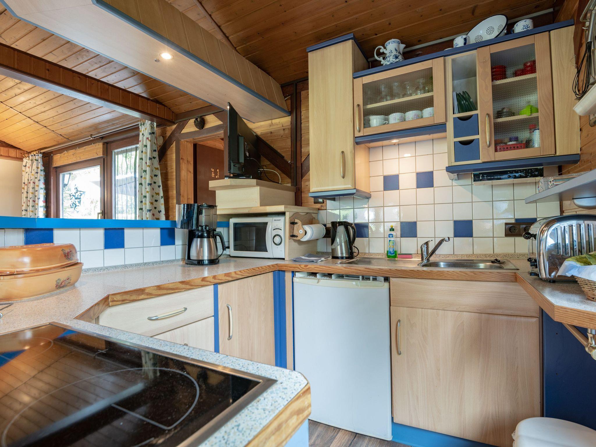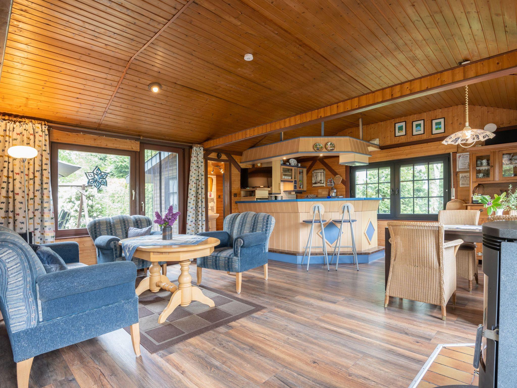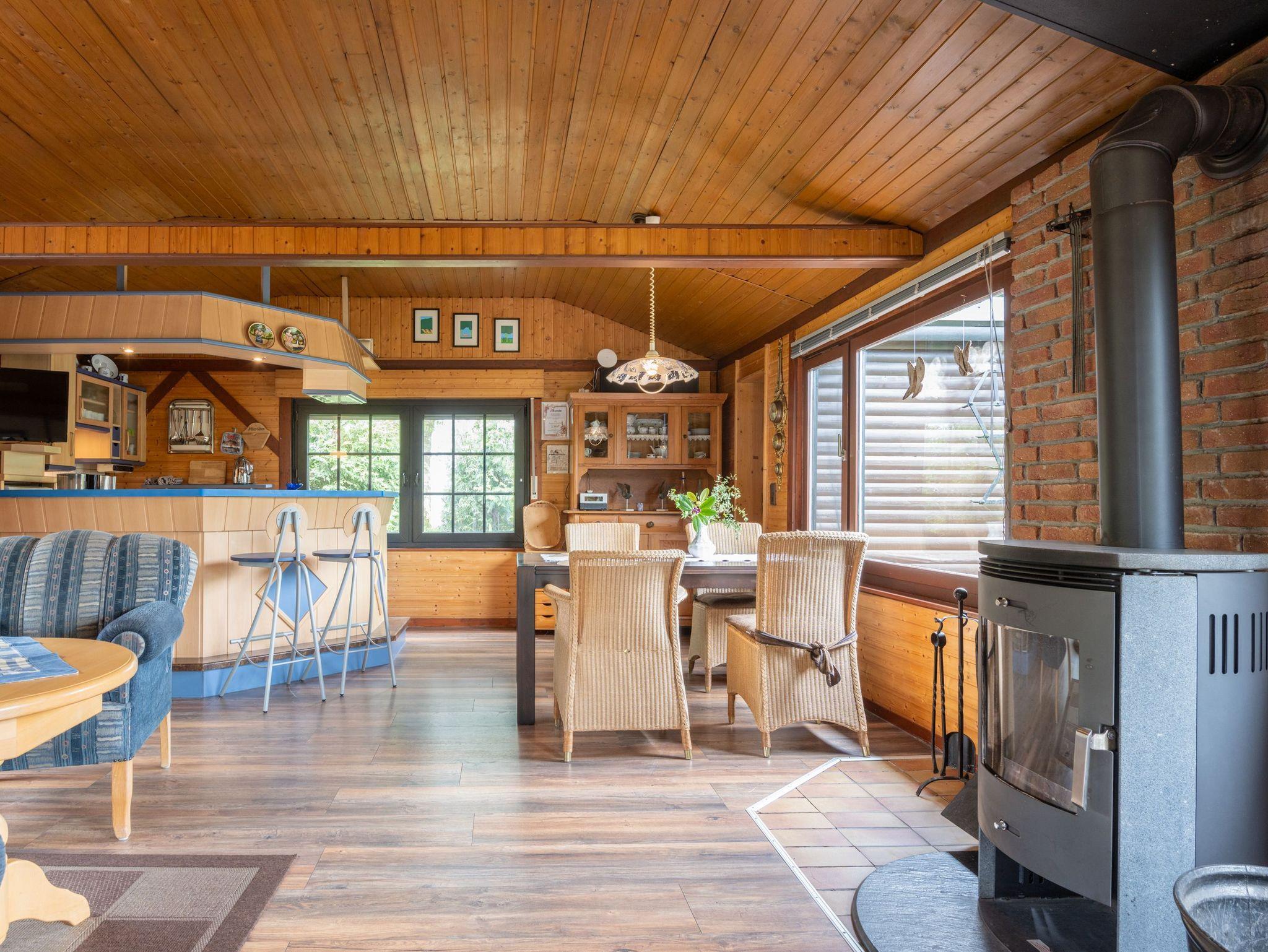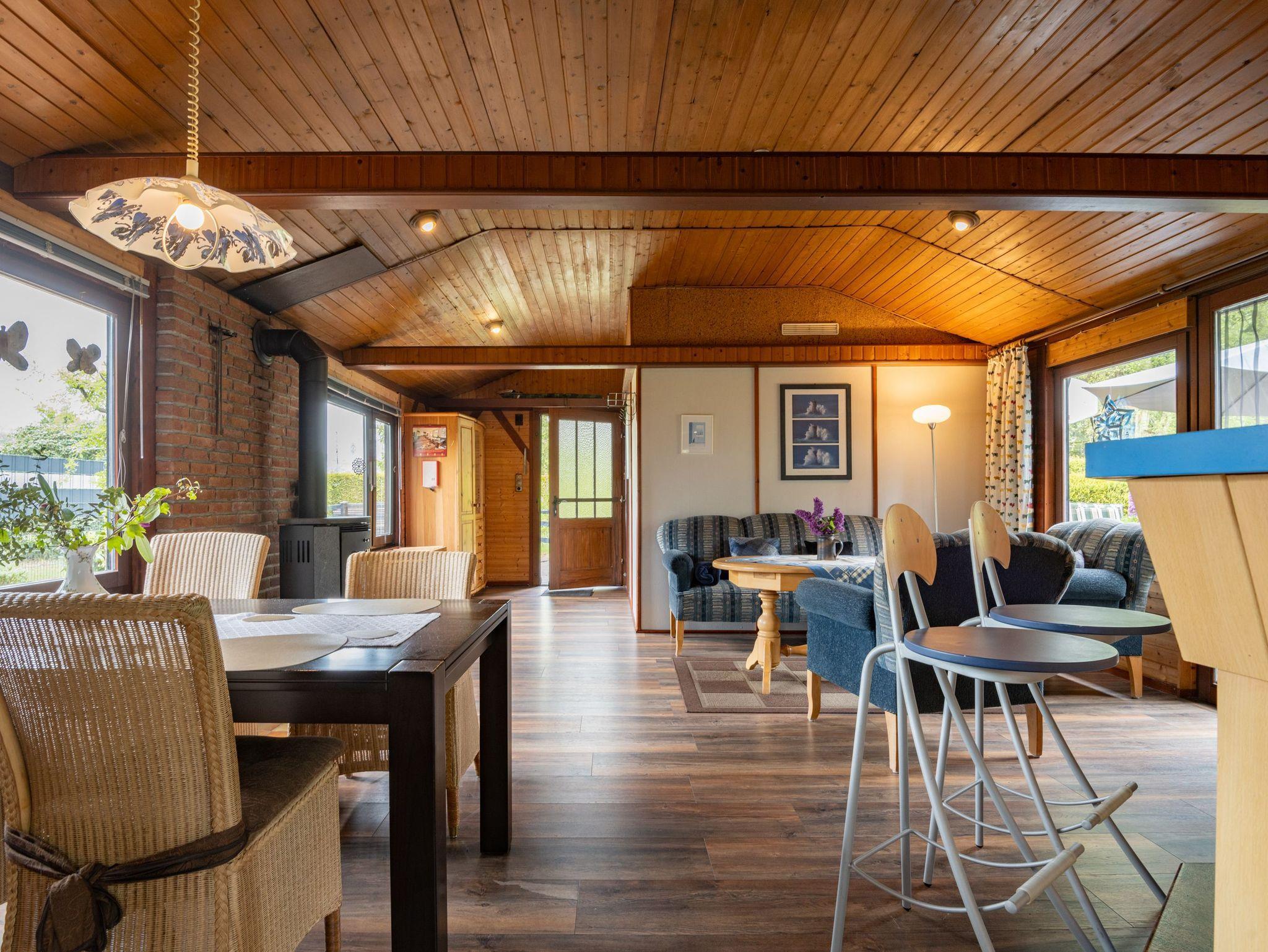 Gemütliches Blockhaus in Hesel mit Kamin, offener Küche und Garten, ideal für Familien und kleine Hunde.