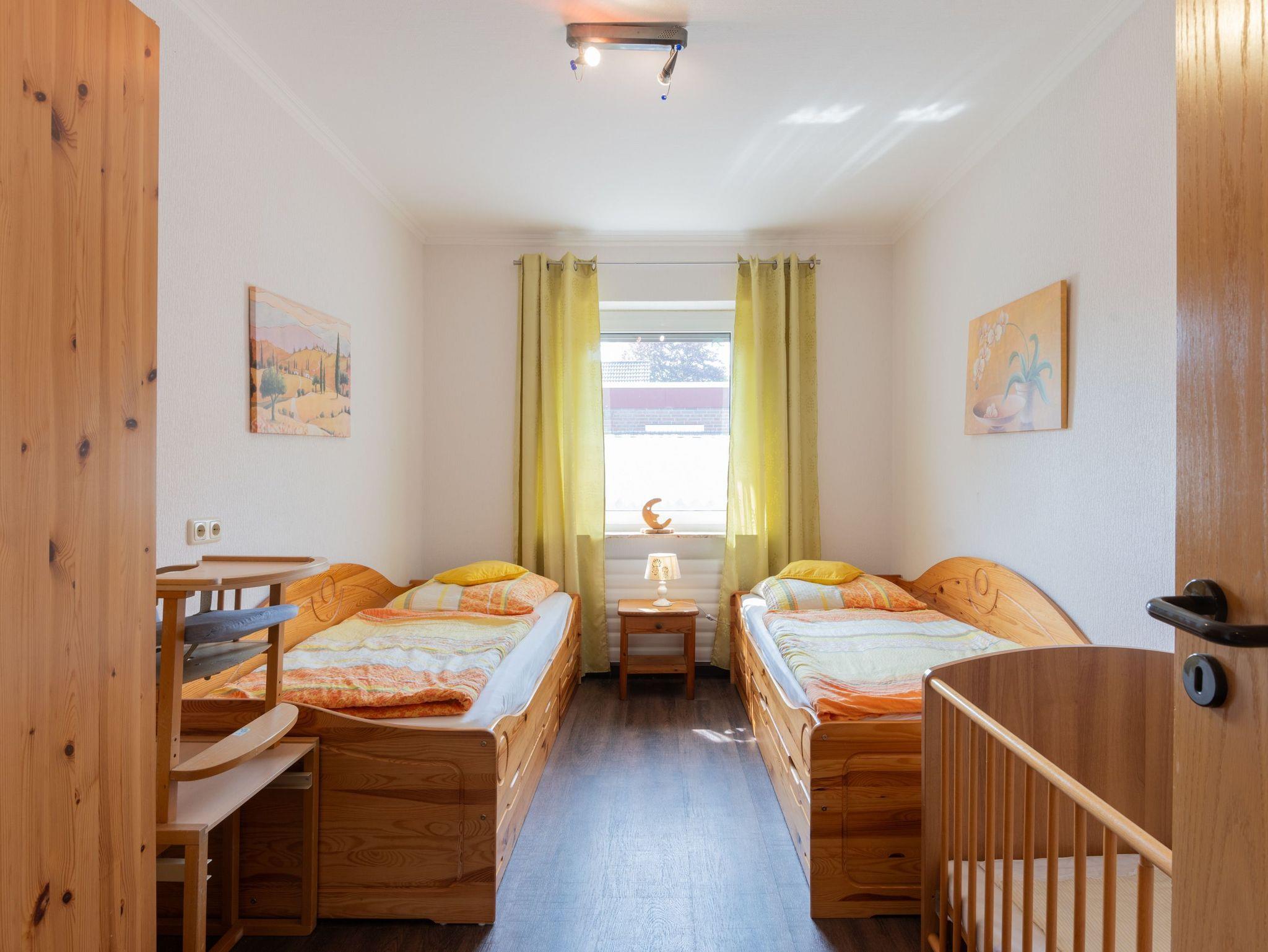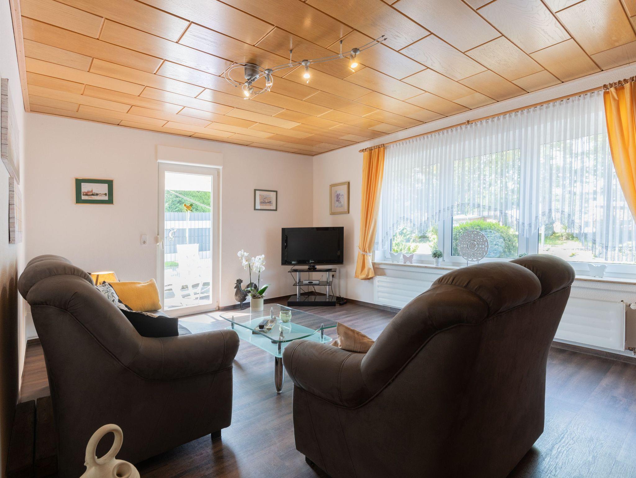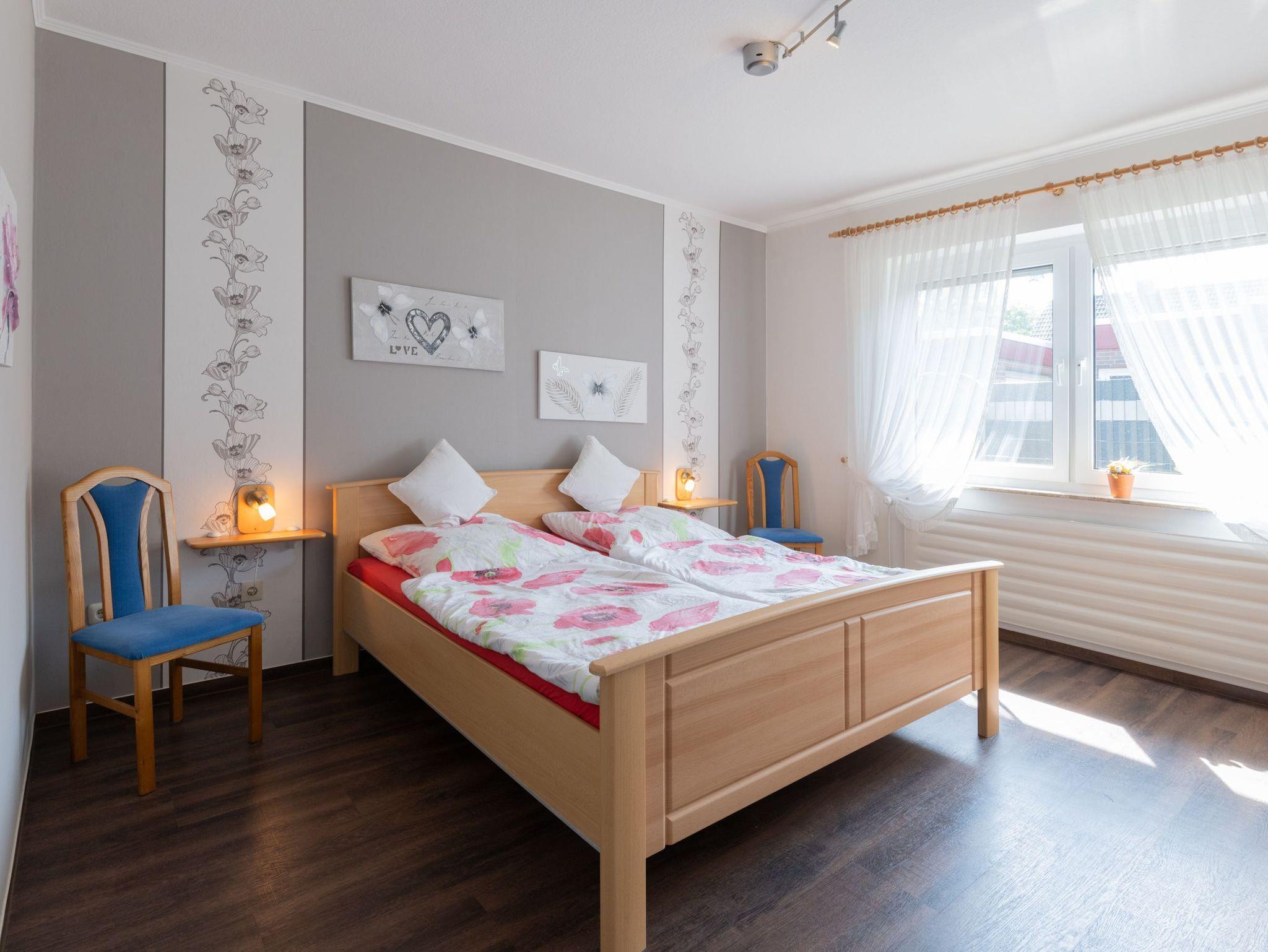 Sehr schöne und geschmackvoll eingerichtete Ferienwohnung direkt in Hesel (Ort ca. 4.000 Einwohner). Die Ferienwohnung verfügt über eine große Küche mit Spülmaschine, Wasserkocher, Kaffeemaschine, Tassimo-Maschine, Toaster, Eierkocher, Mixer und Kinderhochstuhl. Das Wohnzimmer hat eine Terrassentür, die Sie auf die direkt angrenzende Terrasse führt. Zur Wohnzimmerausstattung gehören zwei gemütliche Sitzgarnituren und ein großer Flachbildschirmfernseher (37 Zoll) zur Verfügung. Im Schlafzimmer befindet sich ein etwas erhöhtes Doppelbett (1,80 m x 2,00 m) mit einem großen Fenster und einem elektrischen Außenrollo.Im zweiten Schlafzimmer stehen zwei getrennte Einzelbetten (0,90m x 2,00m) und ein Babybett aus Holz. Im Badezimmer befindet sich eine Dusche mit einem ca. 10 cm hohen Einstieg und einer Toilette. Zusätzlich gibt es eine sep. Gästetoilette, ein Abstellraum in der Wohnung und im Nebengebäude seht ein sep. Waschraum mit Waschmaschine und Trockner sowie eine abschließbare Unterstellmöglichkeit dem Gast zur Verfügung. Auf der Terrasse befinden sich Gartenstühle, ein Grill sowie als Sonnenschutz eine Markise. Ein Damen- und ein Herrenfahrrad stehen kostenfrei zur Verfügung.