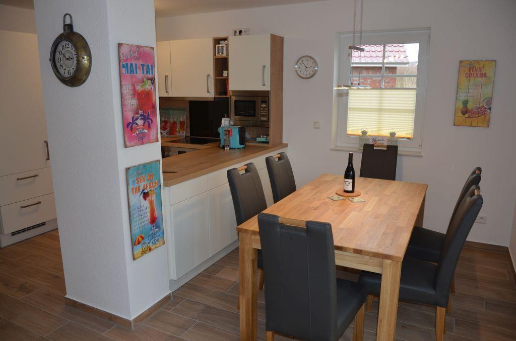 Hier werden Sie sich gleich wohlfühlen. Das Haus ist mit einer modernen Küche mit hochwertigen Küchengeräten von Bosch ausgestattet, Backofen, Mikrowelle, Cerankochfeld, Kühlschrank mit Eisfach, Kaffeemaschine, Kapselmaschine von Cafissimo, Eierkocher, Toaster, Mixer u.v.m. In der Essecke haben 6 Personen bequem Platz. Ein Teeservice steht für die typisch ostfriesische Teezeremonie zur Verfügung.