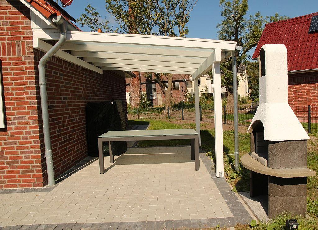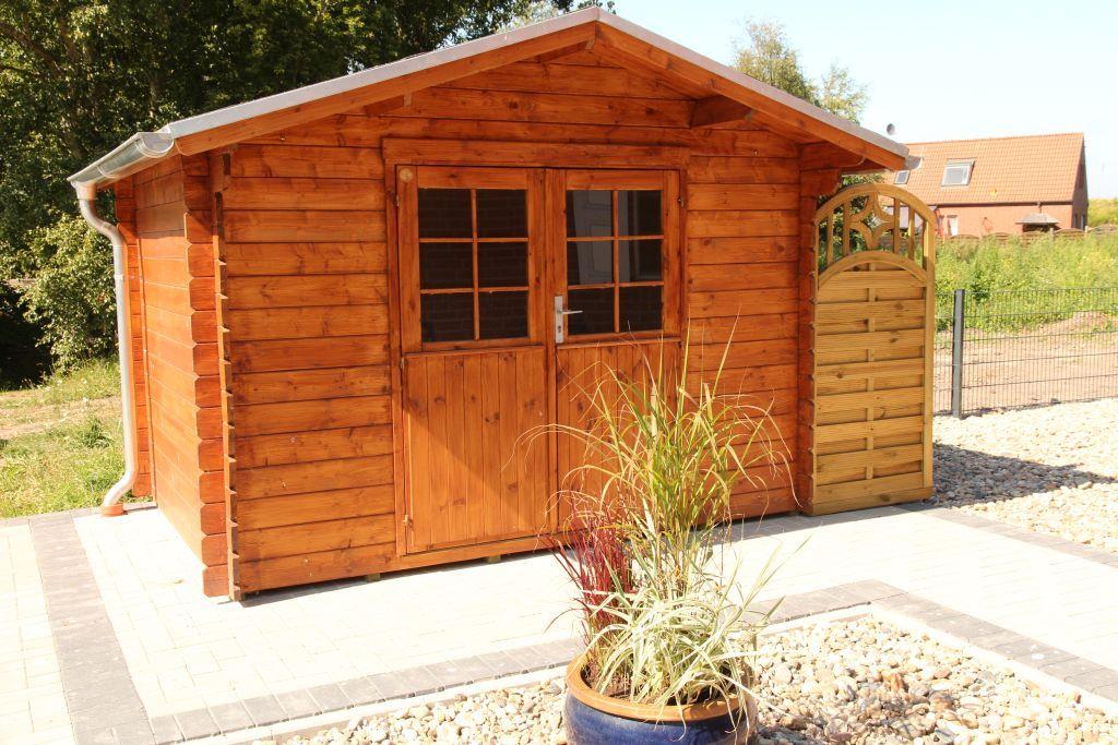 Im Außenbereich finden Sie einen großzügigen Garten, eine überdachte beschattete Terrasse mit einem Strandkorb und eine weitere möblierte Terrasse mit großem Tisch und 6 Stühlen und Grillkamin. Für Ihre Fahrräder steht ein großes Abstellhaus mit Steckdosen zum Aufladen Ihrer E-Bikes und ein Wäscheständer zur Verfügung.