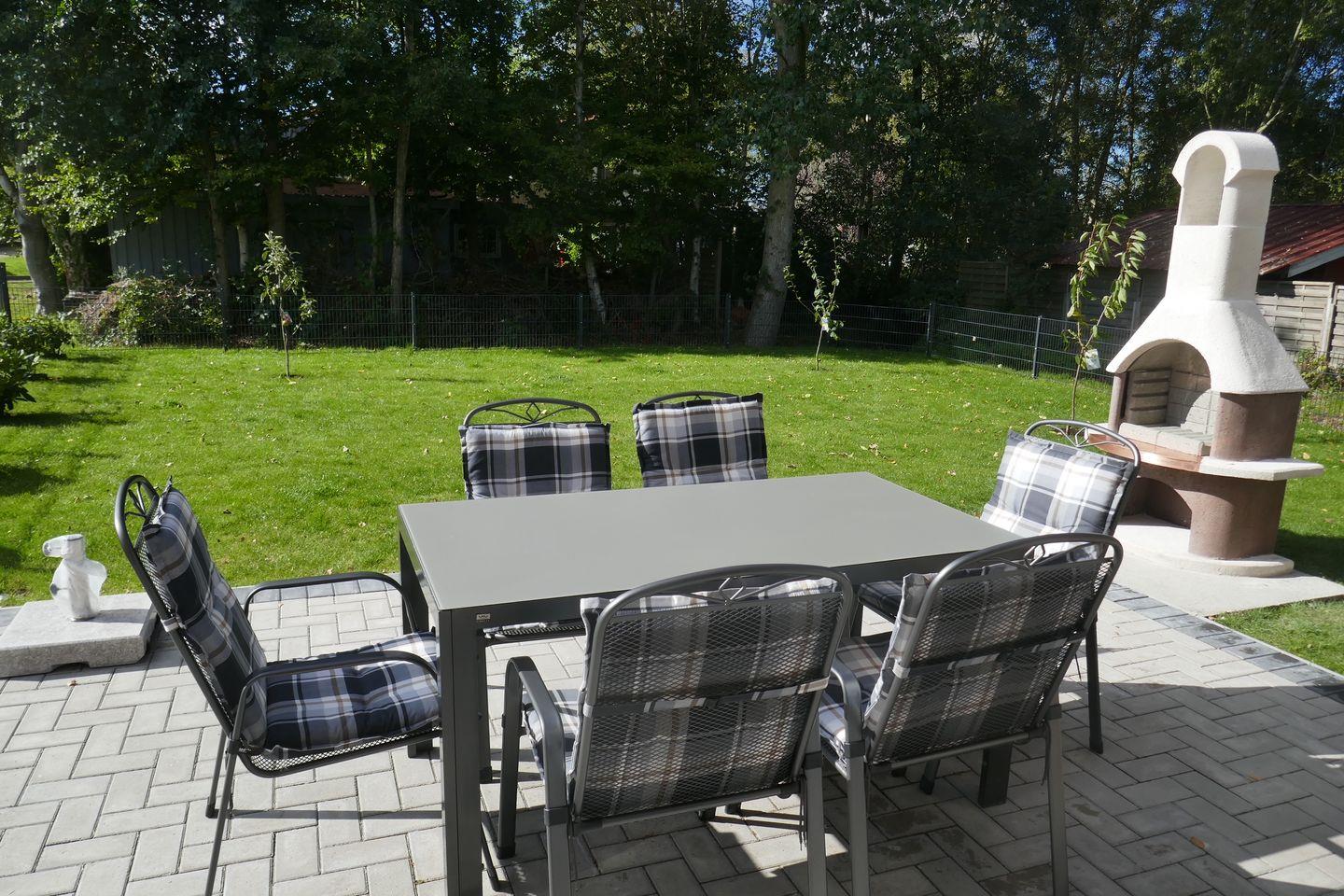 Von hier aus können Sie auf die großzügige, möblierte, nach Südwesten gerichtete Terrasse hinaustreten und den mit Rhododendren und neu gepflanzten Obstbäumen gestalteten Garten genießen. Nutzen Sie gerne den vorhandenen Außenkamin zum Grillen oder wärmen Sie sich am gemütlichen Holzfeuer in der kalten Zeit.
