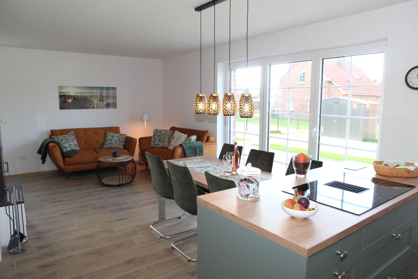 Neues Ferienhaus mit Deichblick und hochwertiger Ausstattung in Hilgenriedersiel, ideal für Familien und Hunde.