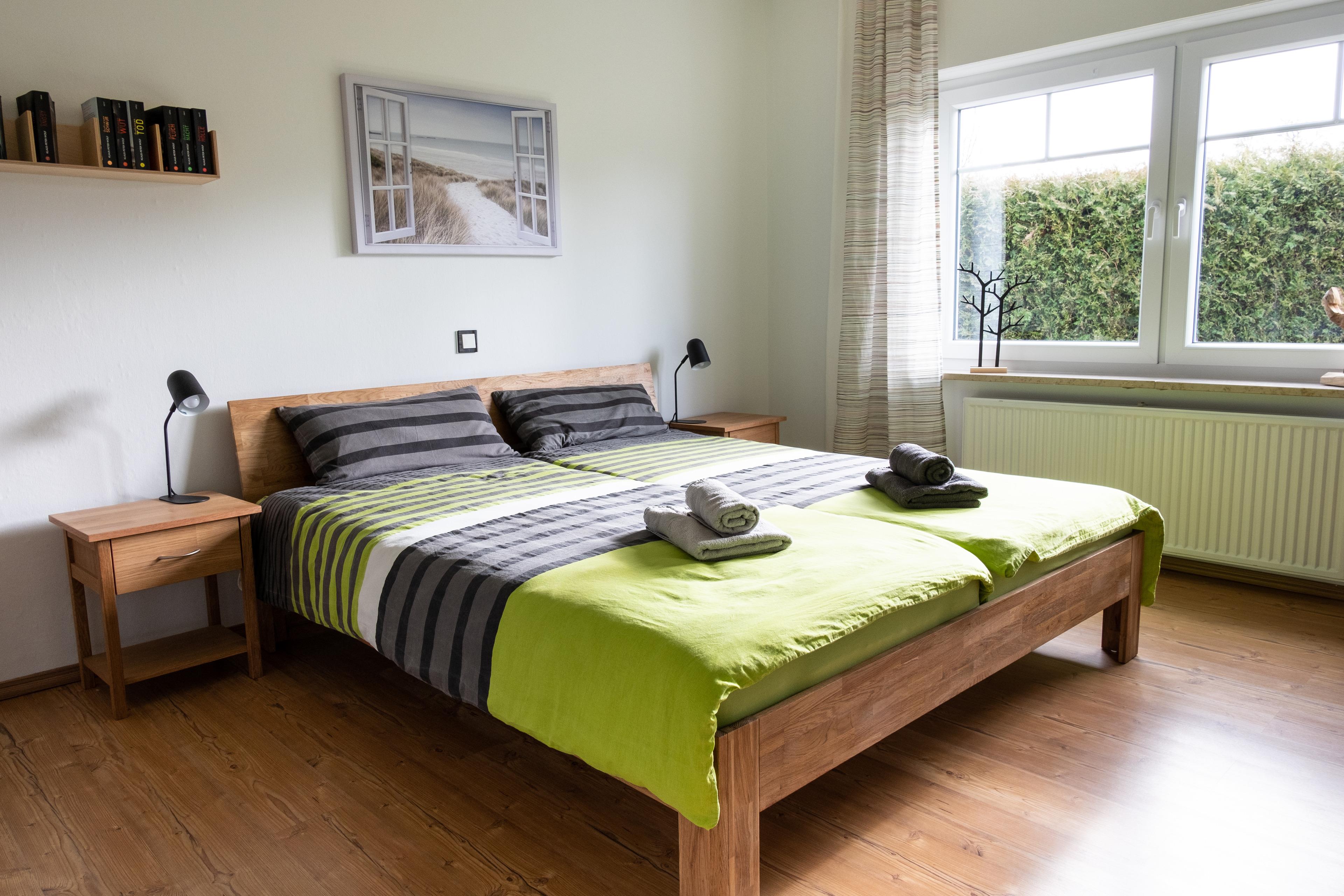 eins mit Doppelbett 180*200, großem Kleiderschrank und Kommode,