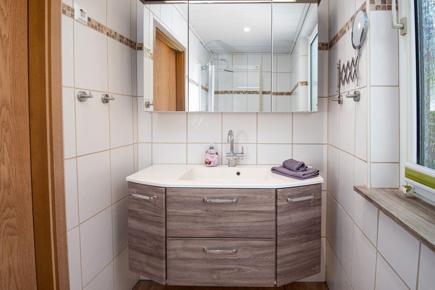 Der einladende Flur führt Sie direkt in die gut ausgestattete Küche, in der Sie kulinarische Köstlichkeiten zubereiten können. Der großzügige Wohn- und Essbereich bietet ausreichend Platz für gemeinsame Mahlzeiten und entspannte Abende. Ein Hauswirtschaftsraum mit Waschmaschinenanschluss sowie ein modernes Badezimmer mit Dusche und Handwaschbecken runden das Erdgeschoss ab. Ein separates WC befindet sich in einem eigenen Raum.