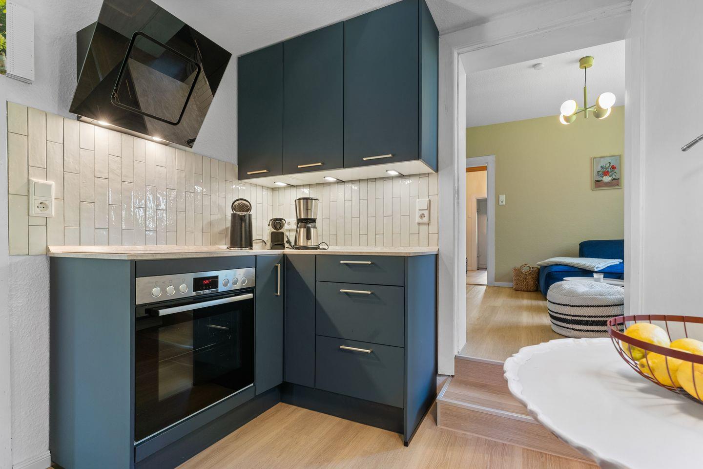 Voll ausgestattete Küche mit Backofen, Herd, Kaffeemaschine, Toaster, Wasserkocher, Geschirrspüler & Esstisch