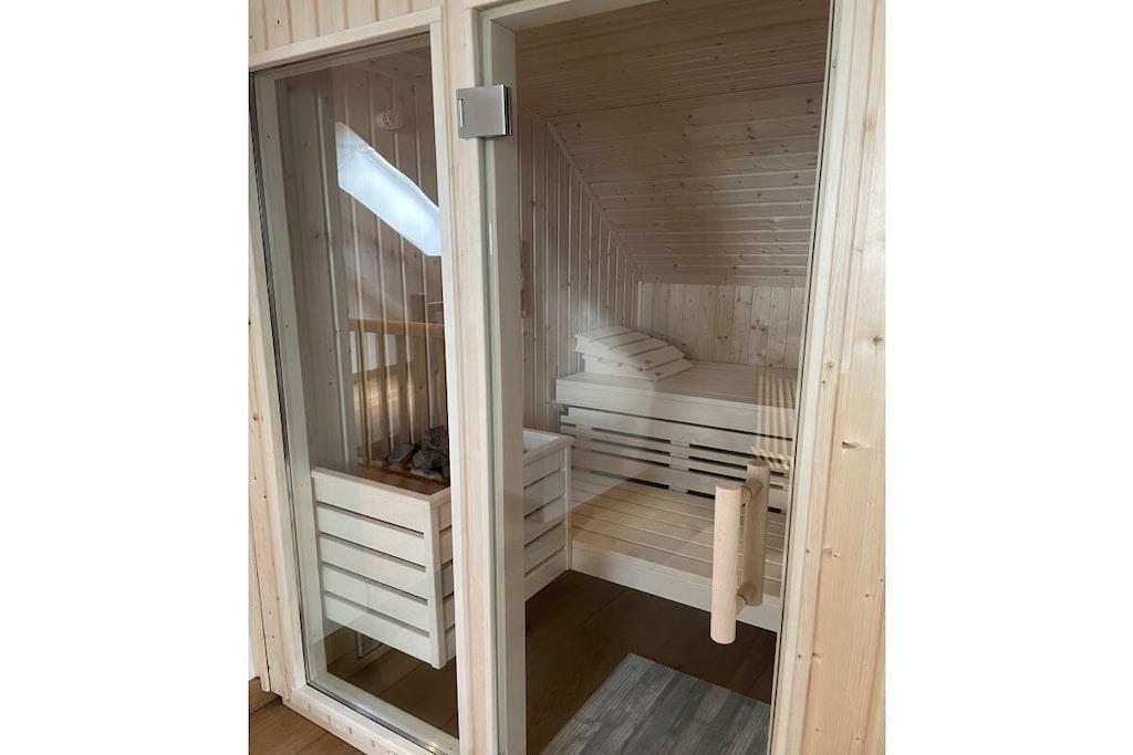Luxuriöses Ferienhaus mit Sauna und Teichblick