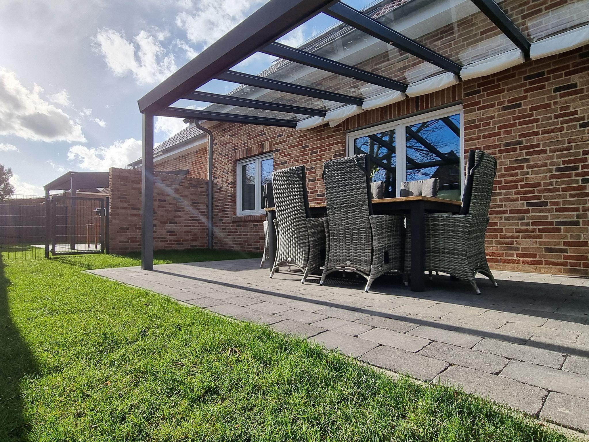 Im eigenen komplett eingezäunten Garten, finden wir tolle Spielmöglichkeiten für Kinder. Während die Kleinen sich austoben, finden die Erwachsenen gemütlich Platz unter dem Sonnenschirm und haben gleichzeitig die Kinder immer im Blick. Eine großzügige Terrassenüberdachung mit einem großen Tisch und Holzkohlegrill ist selbstverständlich in diesem Traumgarten vorhanden.