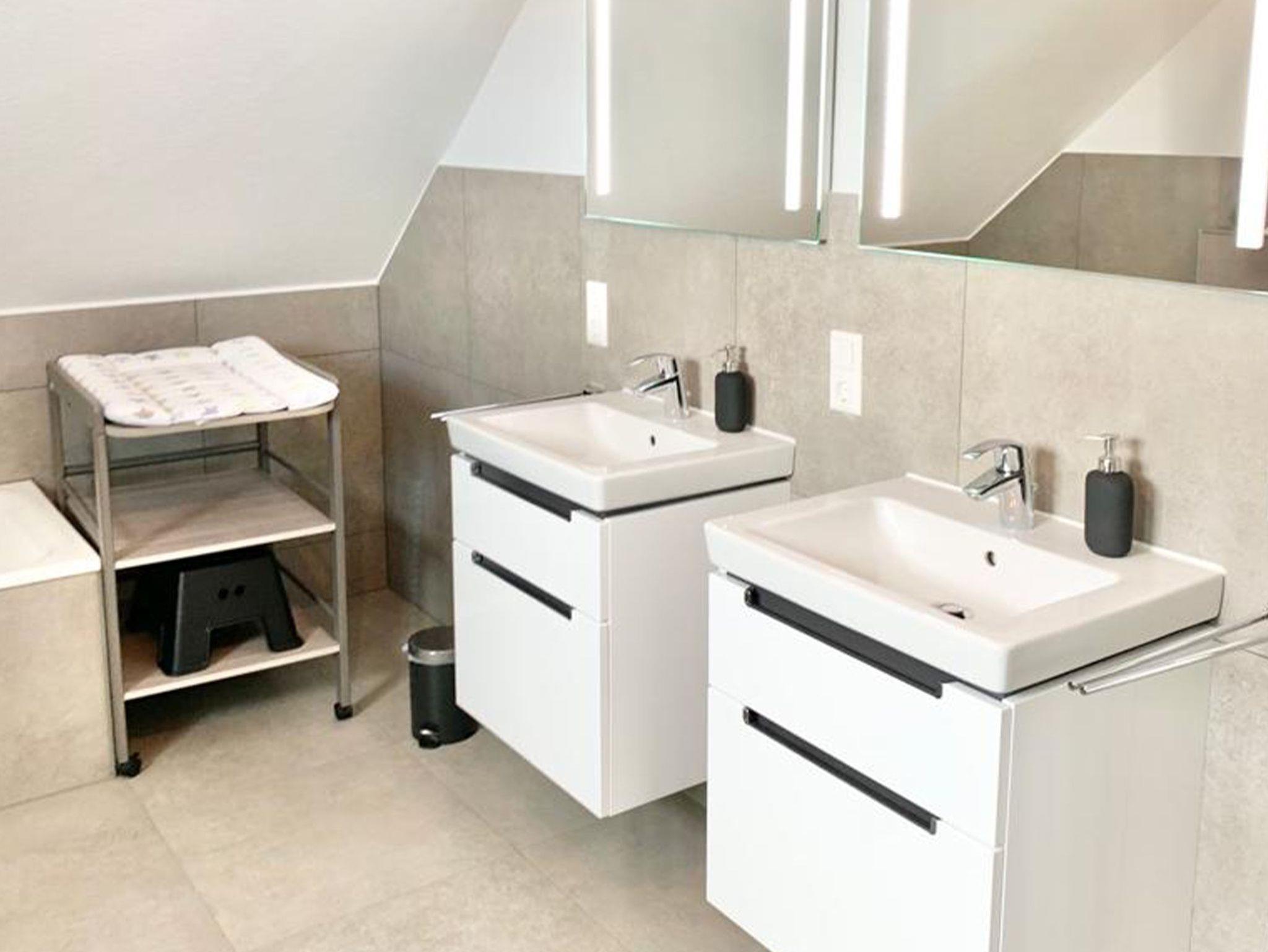 • 1 großes Badezimmer mit Badewanne, Dusche und Sauna