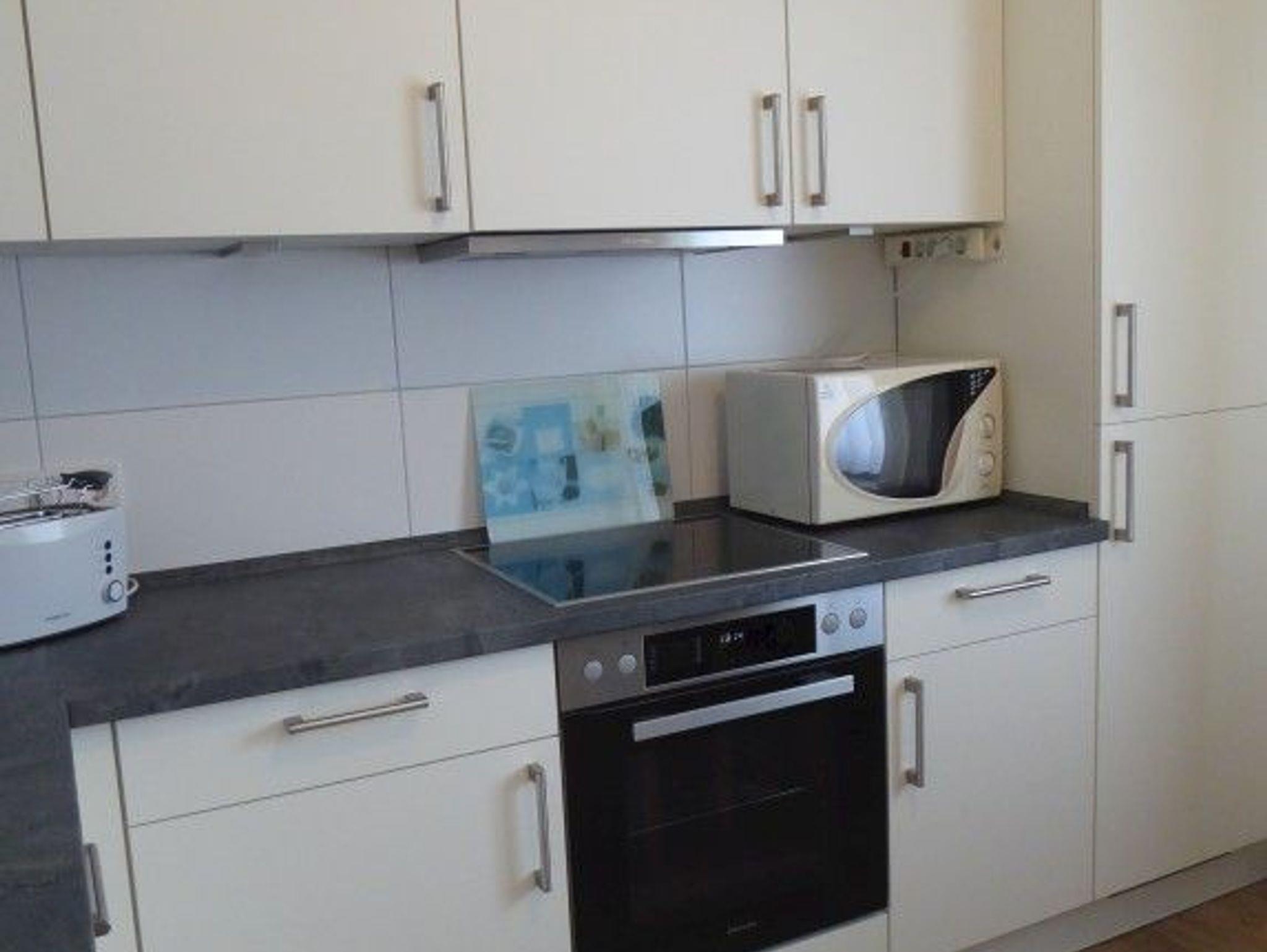 Küche mit CERAN-Elektroherd, Backofen und Mikrowelle