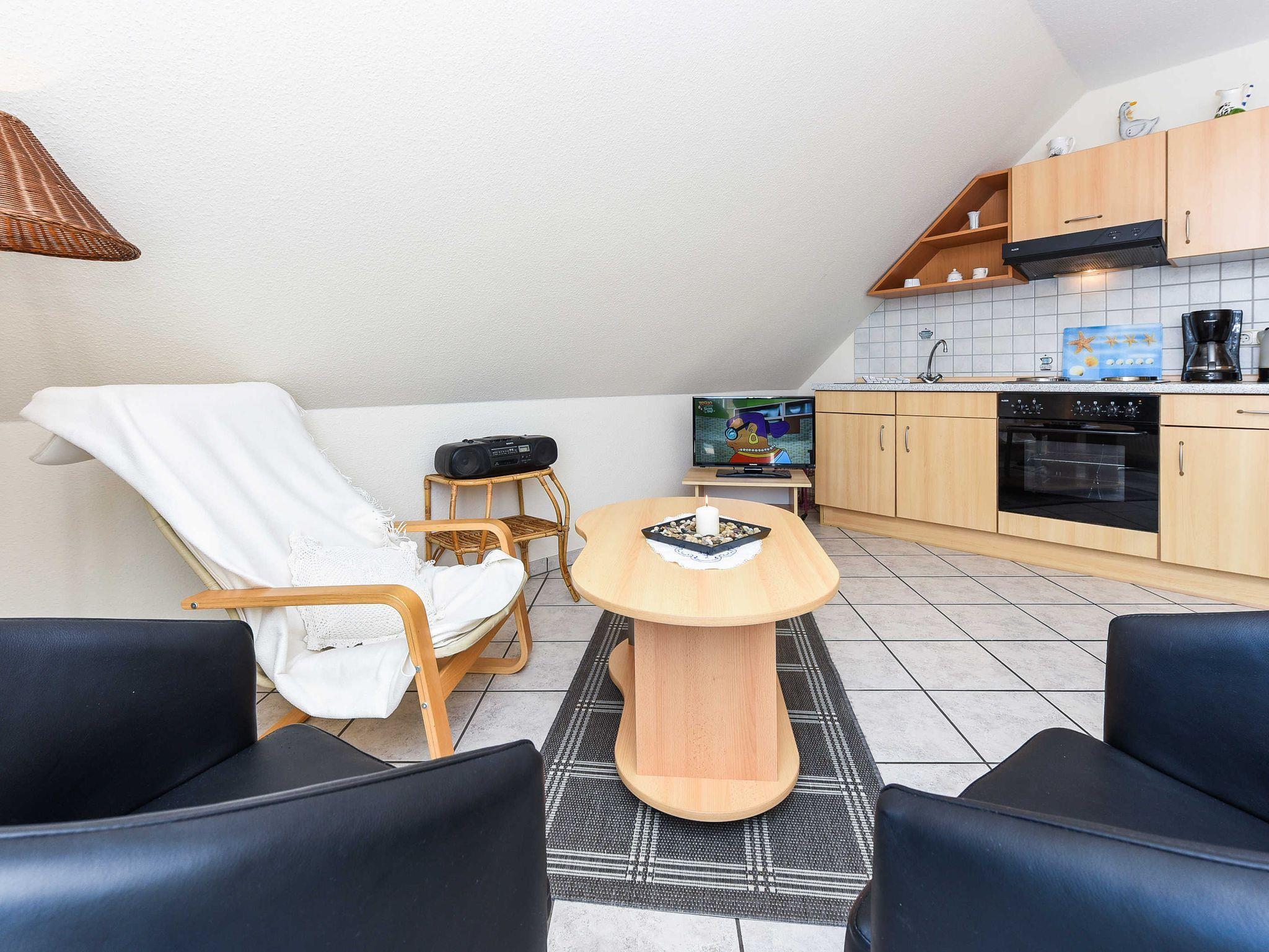 Größe ca. 60 Quadratmeter, Wohnraum mit integrierter Küche, Schlafzimmer, zweites separates Schlafzimmer/Kinderzimmer, Badezimmer mit Dusche, Waschtisch und WC, Obergeschoss, Dachterrasse, ausschließlich für Nichtraucher, optimal für 2 bis 4 Personen und zusätzlich ein Kleinkind.