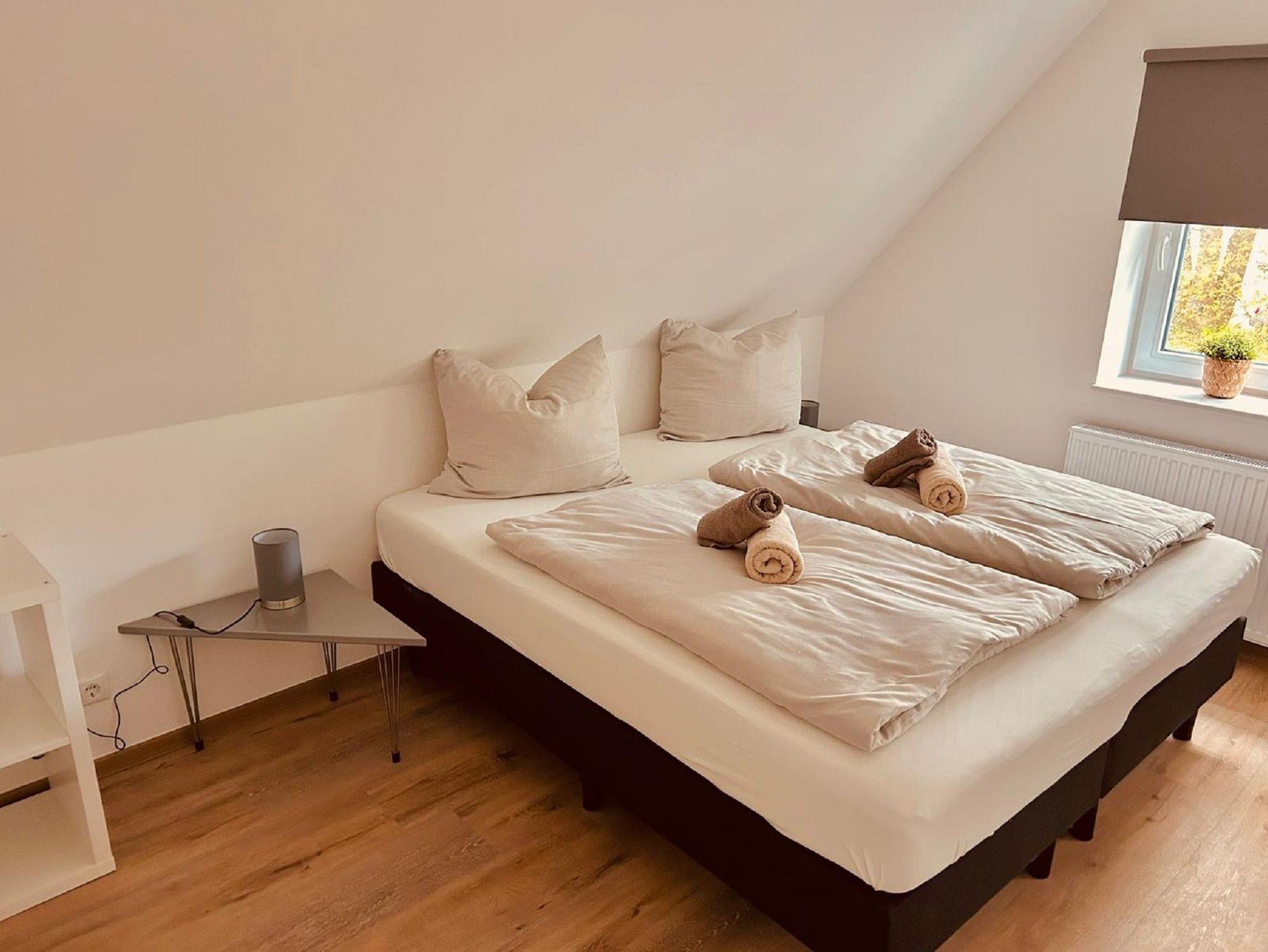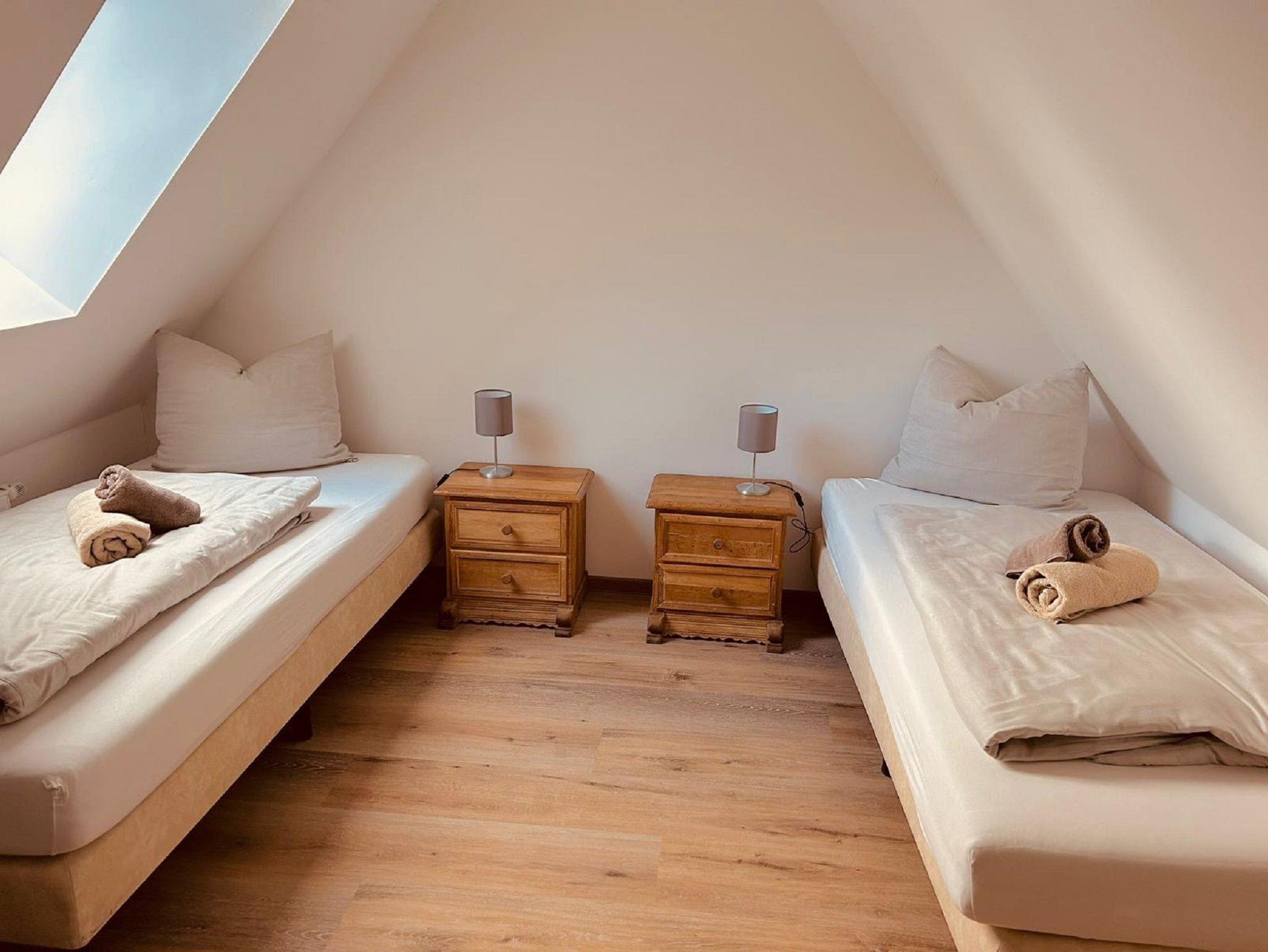 Die Ferienwohnung verfügt über 3 Schlafzimmer, 1 großes Bad mit Dusche und WC, einem Gäste-WC, einer offenen Wohnküche und einer großen Dachterrasse.